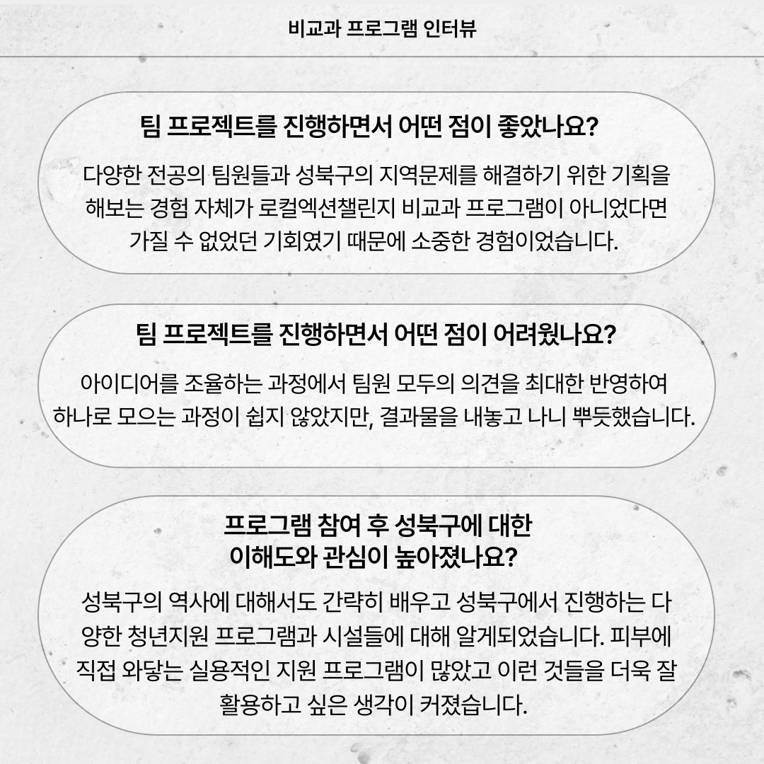 [대학혁신(2024)] 로컬액션 챌린지: 성북을 바꾸는 아이디어 챌린지_인터뷰