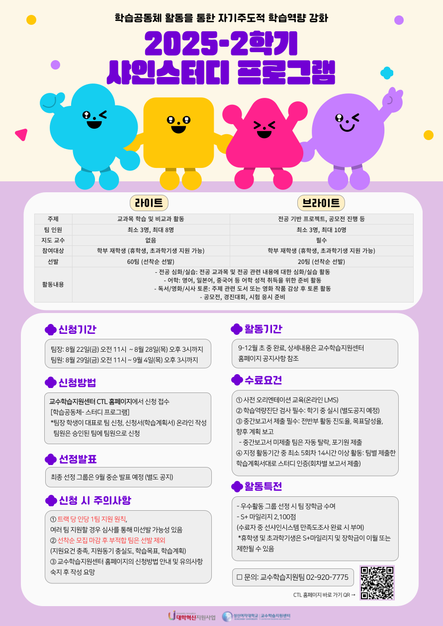 성신여자대학교 수정이들의 학습목표 계획 수립과 학습전략 습득을 지원하기 위한 ‘학습전략 워크숍’이 2025학년도 2학기에도 운영된다. 본 워크숍은 대학혁신지원사업과 교수학습지원센터가 주관하는 비교과 프로그램으로, 재학생들이 시험 스트레스를 효과적으로 관리하고 학습 효율을 높이는 것을 목표로 한다.