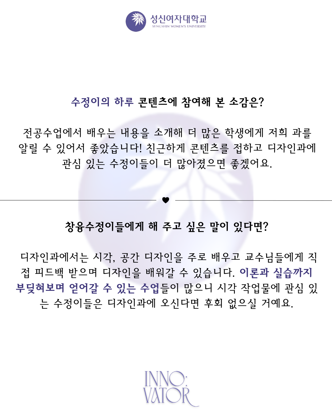 [대학혁신(2025)] 창융인을 위한 학과 선택 가이드 <수정이의 하루: 디자인과 편