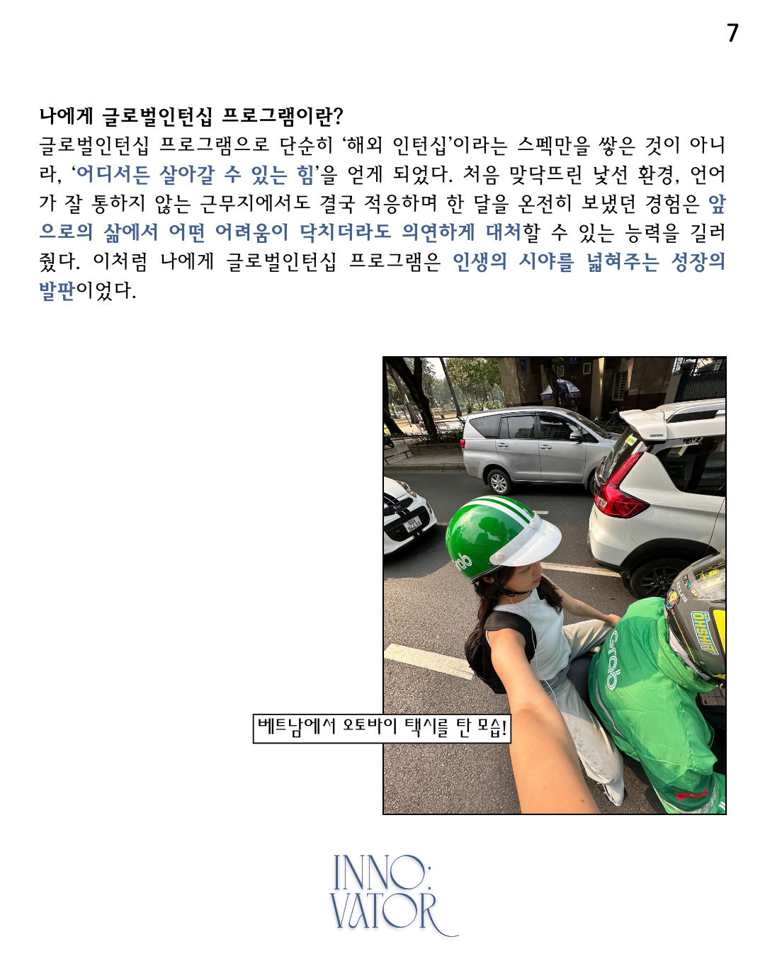 “글로벌 인턴십은 나를 더 잘 이해할 수 있던 성장의 시간이었어요.”