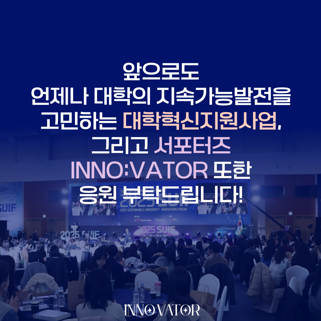 앞으로도 언제나 대학의 지속가능발전을 고민하고 지원하는 대학혁신지원사업, 그리고 서포터즈 INNO:VATOR 또한 응원 부탁드립니다!