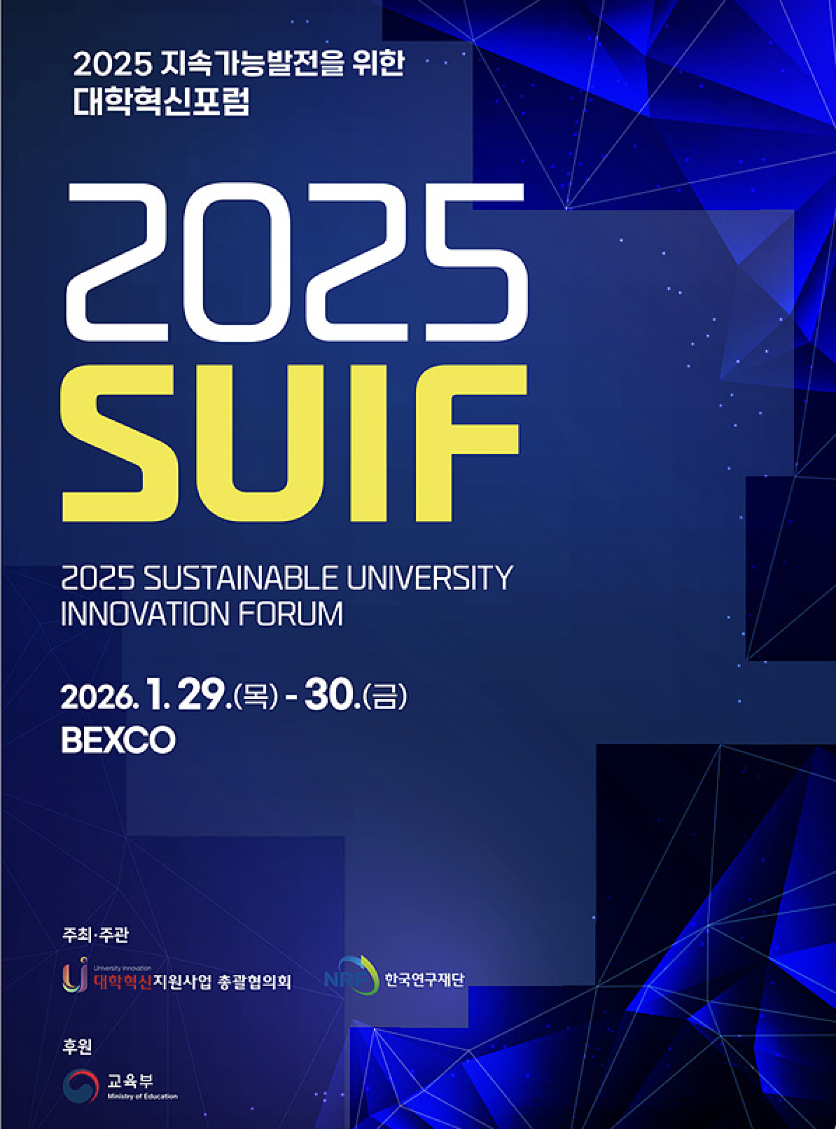 급변하는 사회 환경 속에서 대학의 역할을 조망하고, 대학 교육의 지속가능성을 모색하는 ‘2025 지속가능대학혁신포럼(SUIF)’이 지난 1월 29일과 30일 양일 간 개최되었다. 교육부와 한국연구재단 산하 대학혁신지원사업 총괄협의회가 주관한 본 포럼은 부산광역시 벡스코(BEXCO)에서 진행되었으며, 각 대학의 직원 및 연구자, 학생, 교육 정책 관계자들이 참석해 자리를 빛냈다. 성신여자대학교 INNO:VATOR 역시 우리 대학의 대학혁신 서포터즈 자격으로 초청되어 벡스코를 방문했다.