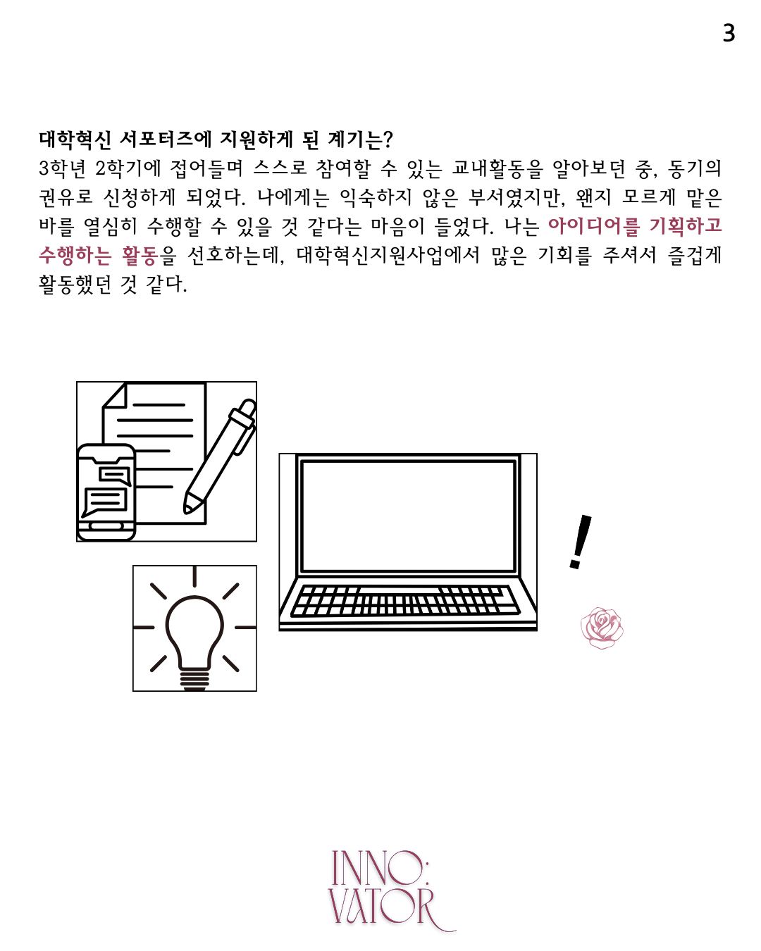 “INNO:VATOR는 나에게 많은 기회를 준 활동이에요.”