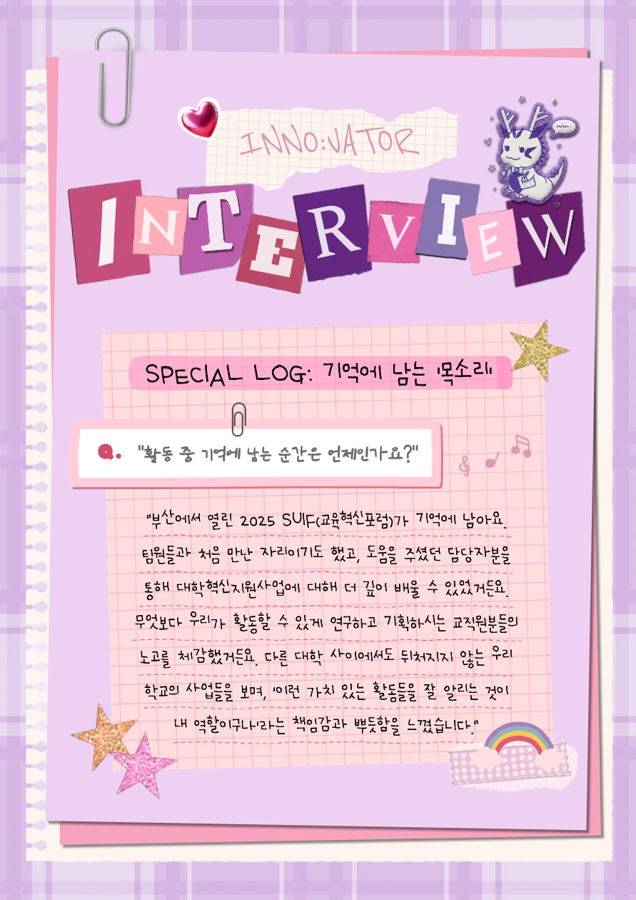 [대학혁신(2025)] 대학혁신 서포터즈 수정이가 들려주는 <나의 이노베이터 이야기>