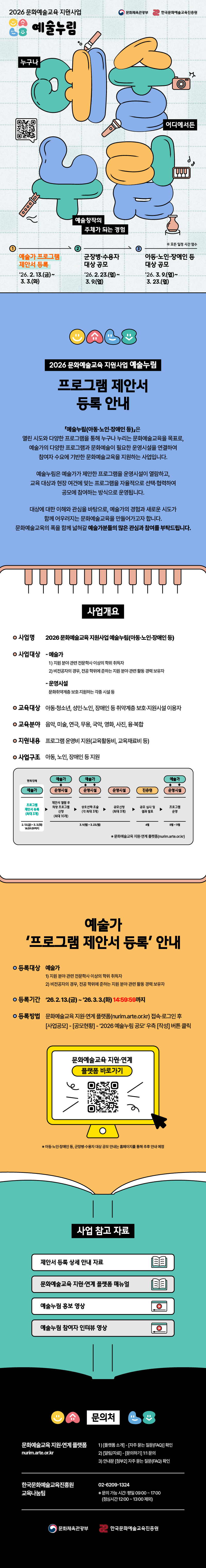 [한국문화예술교육진흥원] 2026 문화예술교육 지원사업 예술누림: 예술가 제안서 등록 안내