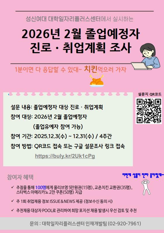 [학부] 2026년 2월 졸업예정자 대상 진로ㆍ취업계획 조사 실시 안내