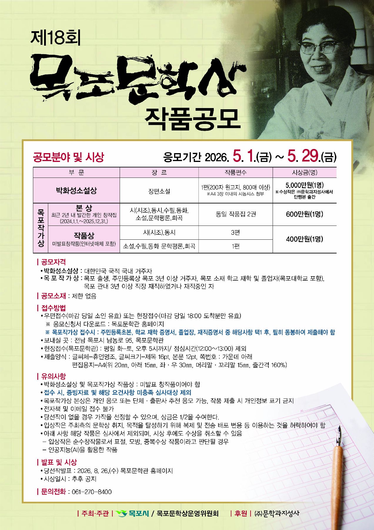[교외] 제18회 목포문학상 작품 공모 안내