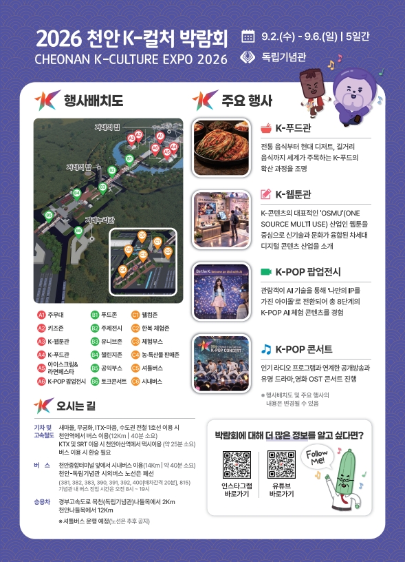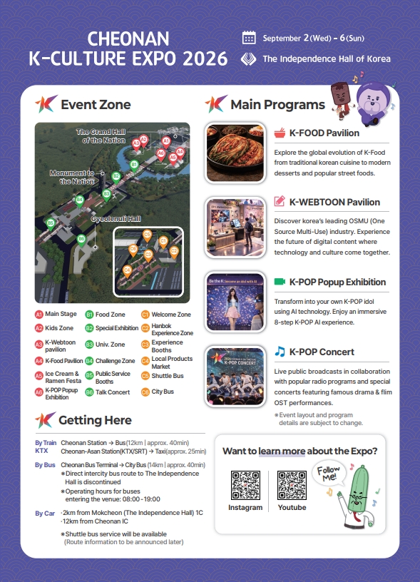 The K-Culture Expo will be held in Cheonan, and we look forward to your interest and participation.