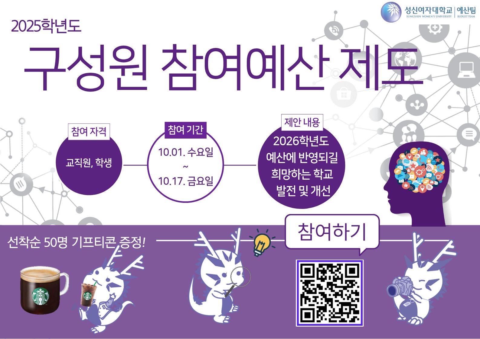 예산팀에서 2025학년도 구성원 참여예산 제도를 안내드립니다.