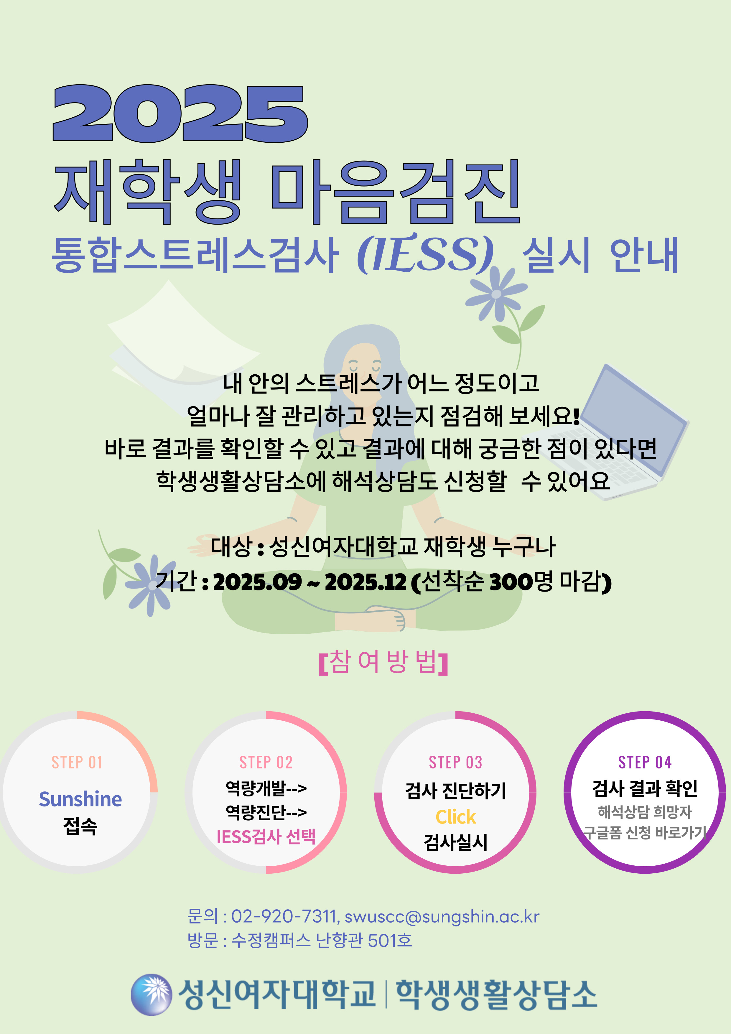 -문 의: 성신여자대학교 학생생활상담소 (02-920-7311, swuscc@sungshin.ac.kr)