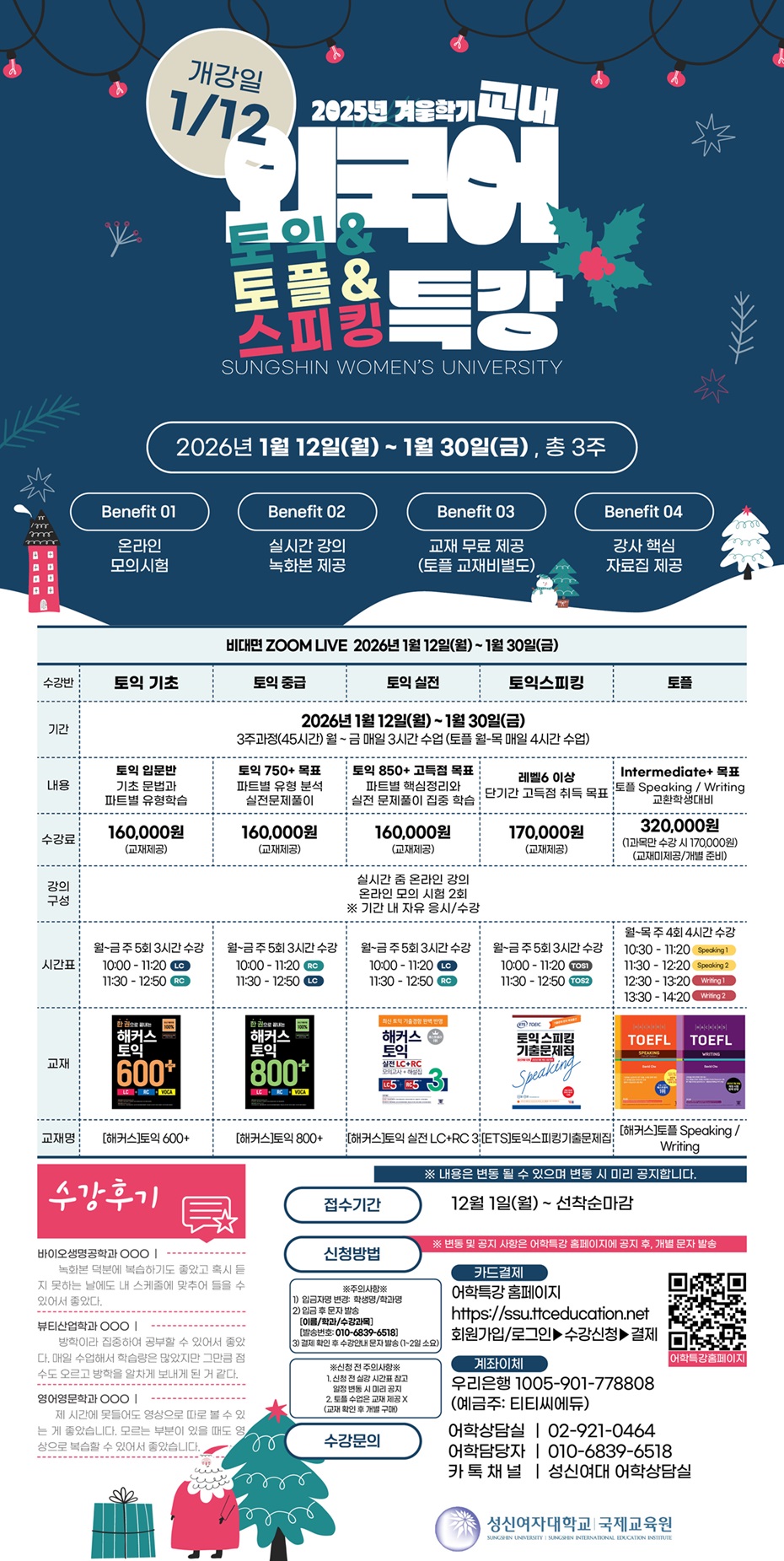 2025학년도 겨울학기 교내 외국어특강 모집 안내