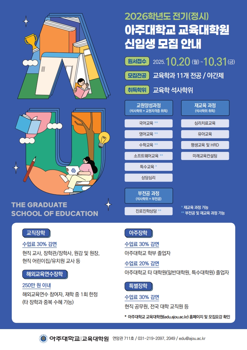 [대학일자리플러스센터] 아주대학교교육대학원 2026학년도 전기 신입생 모집 안내