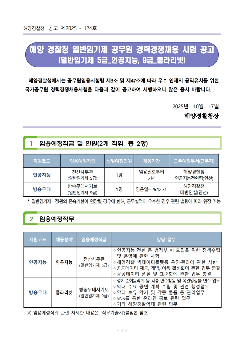 [해양경찰청] 2025년 하반기 임기제 공무원 채용 공고.pdf
