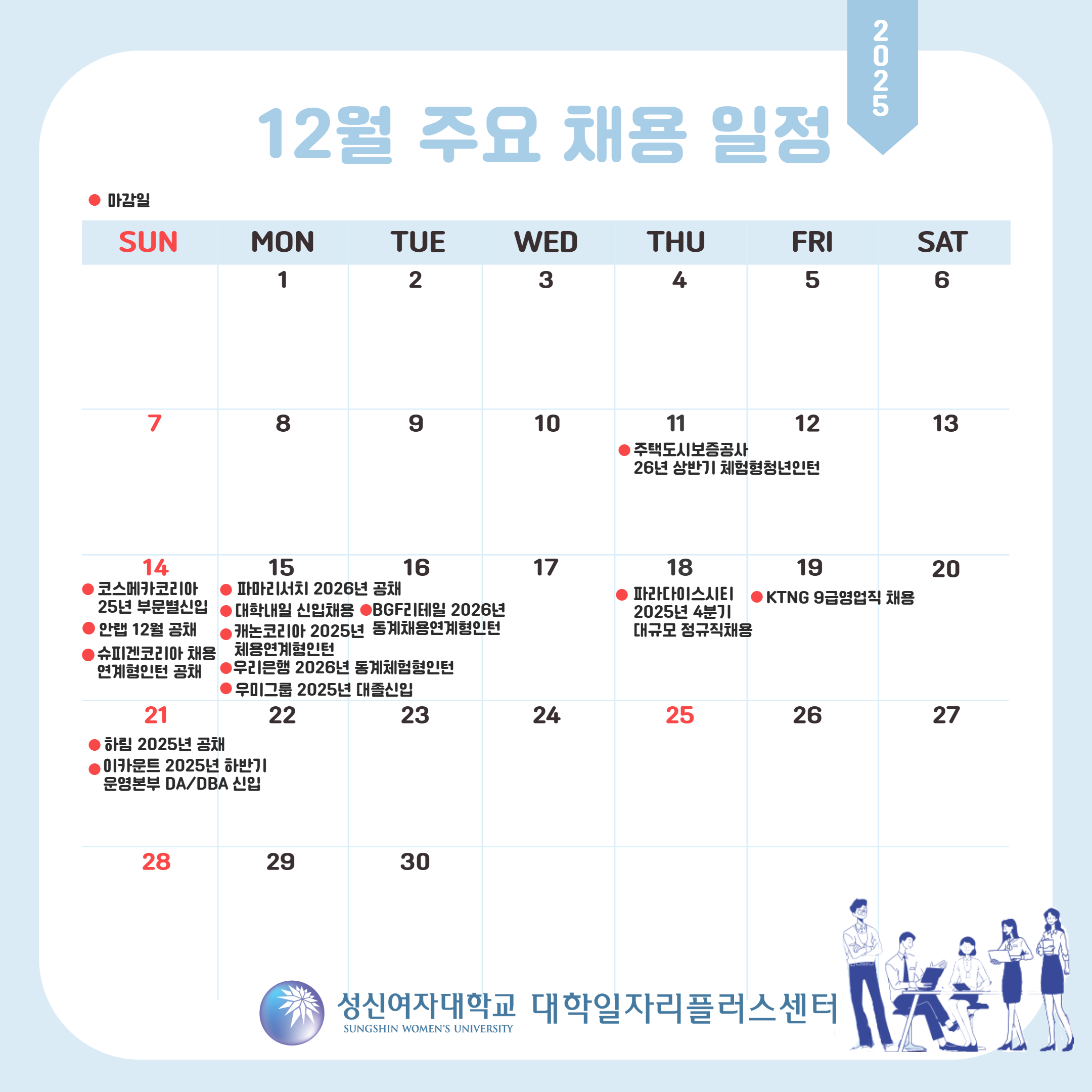 [대학일자리플러스센터] 2025년 12월 주요 채용 일정 안내