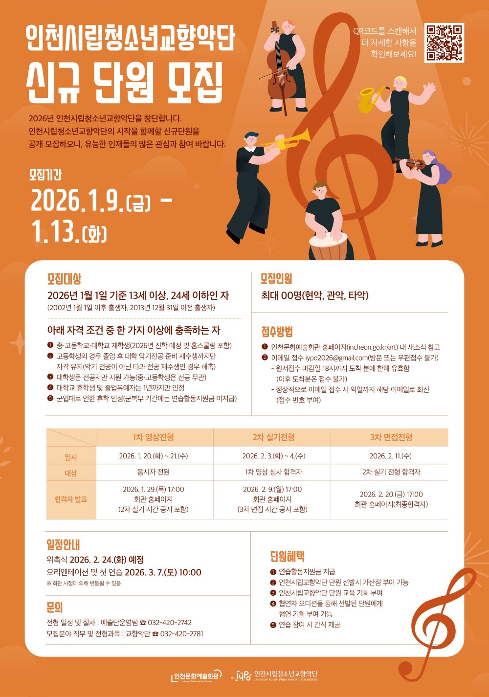 [대학일자리플러스센터] 인천시립청소년교향악단 신규 단원 모집 공고