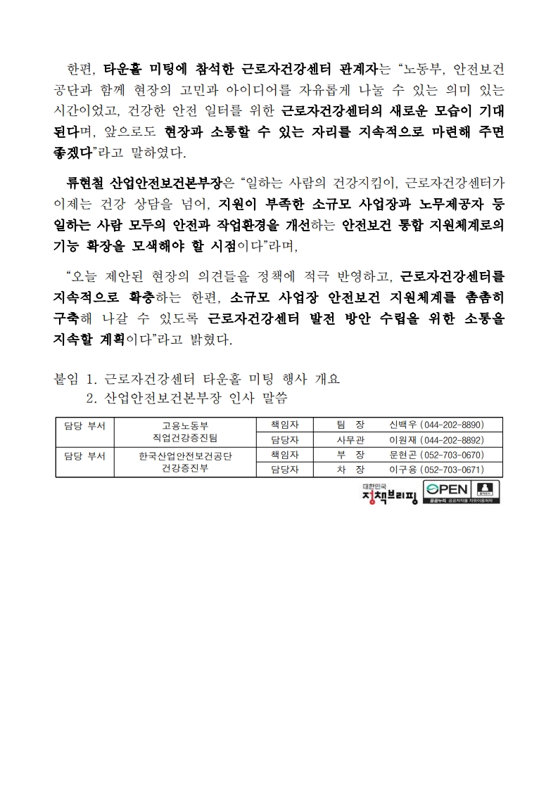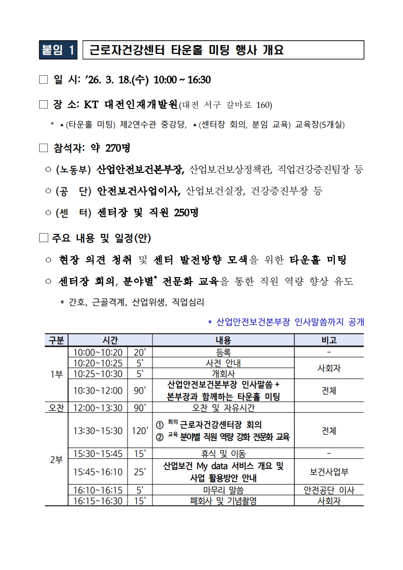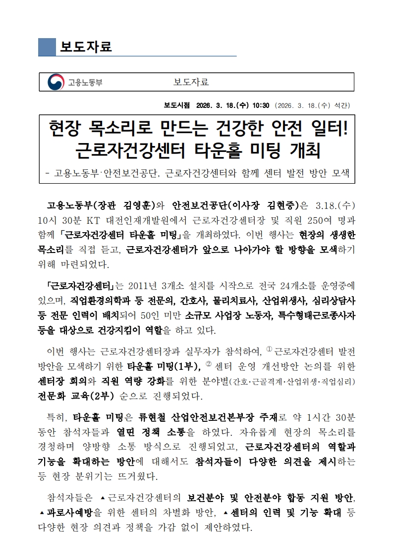 [대학일자리플러스센터] 고용노동부 근로자건강센터 타운홀 미팅 안내