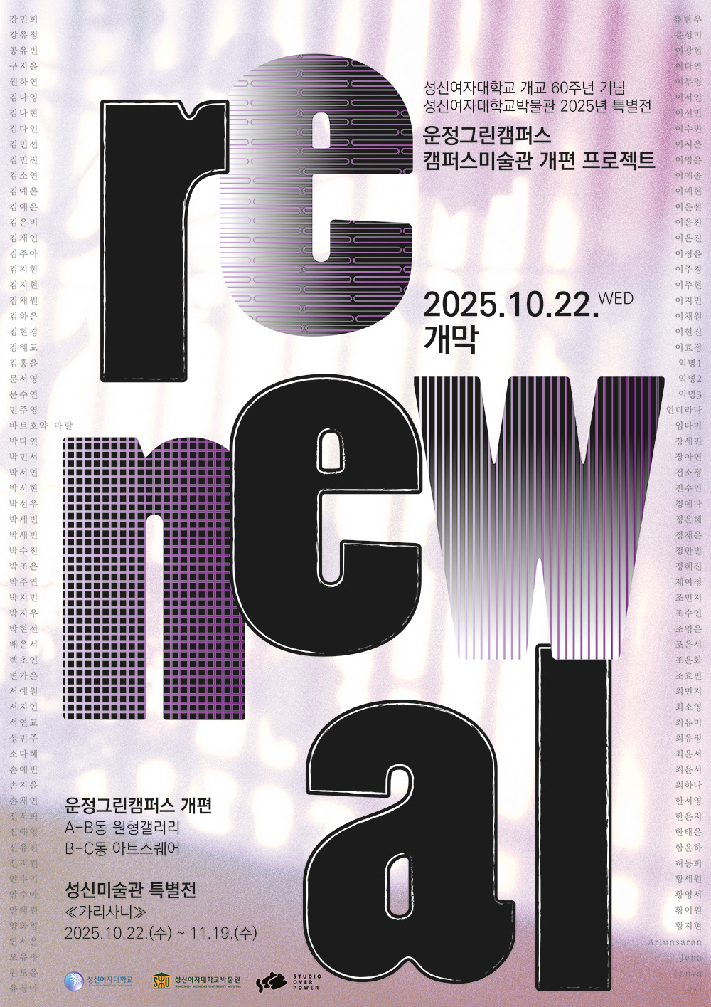 성신여대가 2011년 운정그린캠퍼스 개교에 맞춰 조성한 캠퍼스미술관은 대학 캠퍼스 전체를 하나의 미술관이자 예술적 공간으로 설계한 문화예술 친화 프로젝트로 조성 당시부터 국내 대학 첫 사례로 많은 주목을 받고 있는 가운데 이번 리뉴얼은 아트갤러리Ⅰ(원형갤러리) 및 아트갤러리Ⅱ(아트스퀘어)에 전시된 총 29건의 작품에 대해 진행되었다.