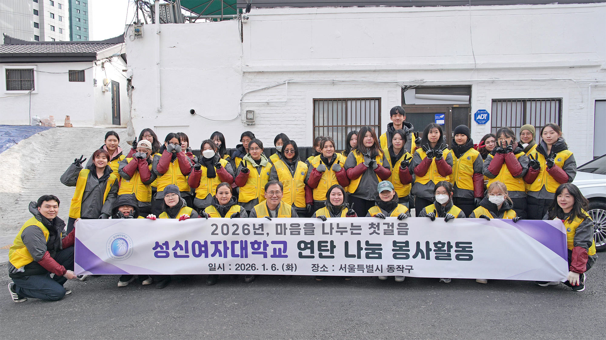 이성근 총장은 1월 6일(화) 병오년 새해를 맞아 성신여대에서 수학 중인 국제학생 및 한국인 재학생 30여명과 함께 서울 동작구 상도동 내 난방 취약계층의 따뜻한 겨울나기 지원을 위한 ‘사랑의 연탄 나눔’ 봉사활동에 참여하였다.