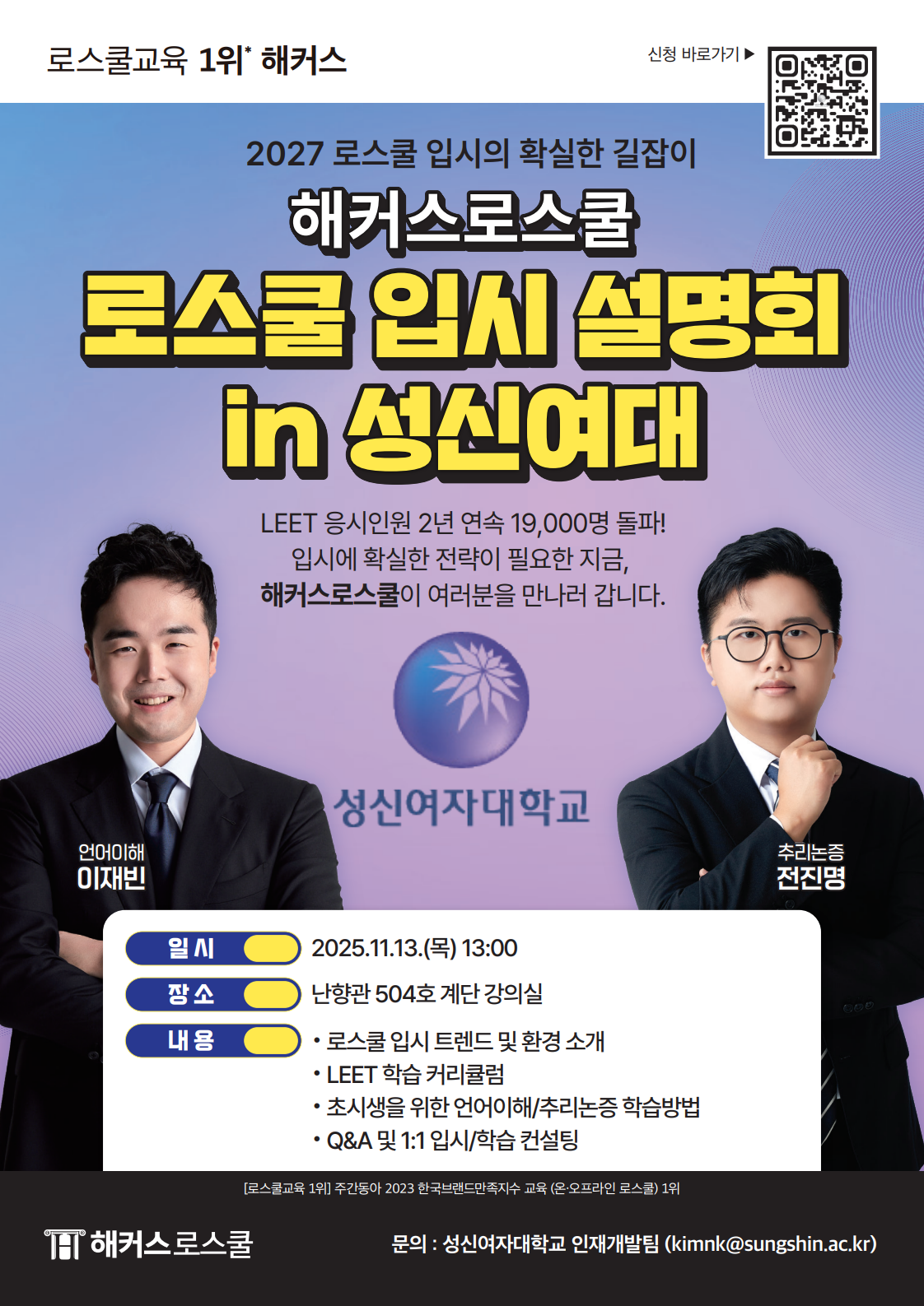 *문의 : 성신여자대학교 인재개발팀 (02-920-7009)