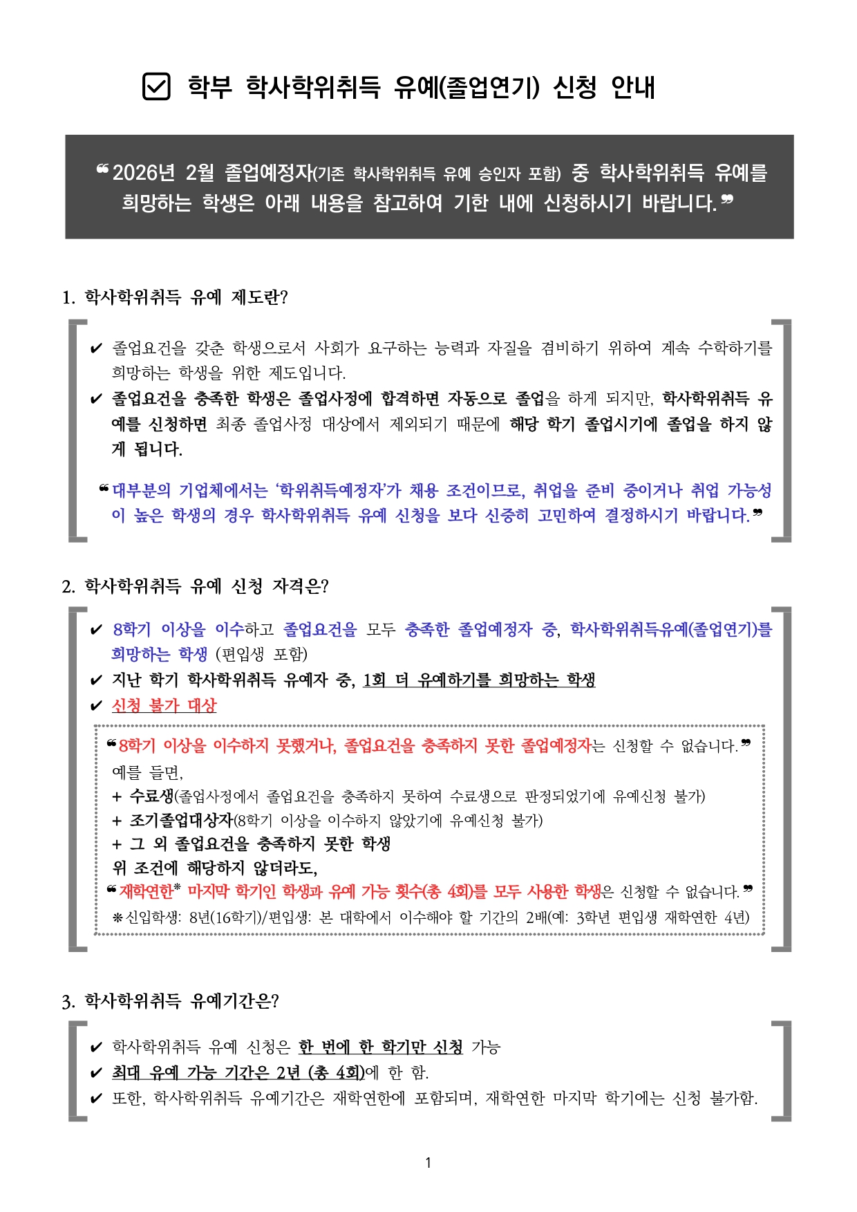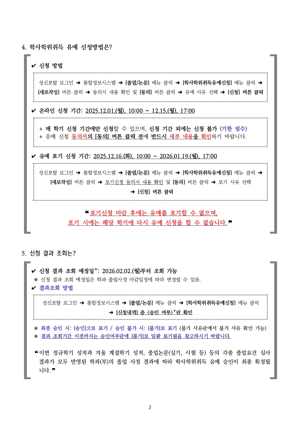 [교내 공지] ★[졸업] 2025-2학기 학사학위취득 유예 신청 안내(2025. 12. 1.(월) 10:00 ~ 12. 15.(월) 17:00)