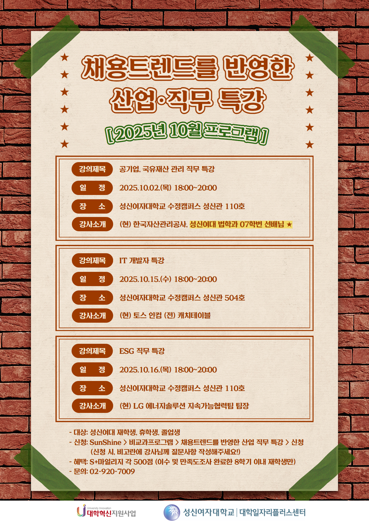 [대학일자리플러스센터] 2025년 10월 채용트렌드를 반영한 산업 직무 특강 안내