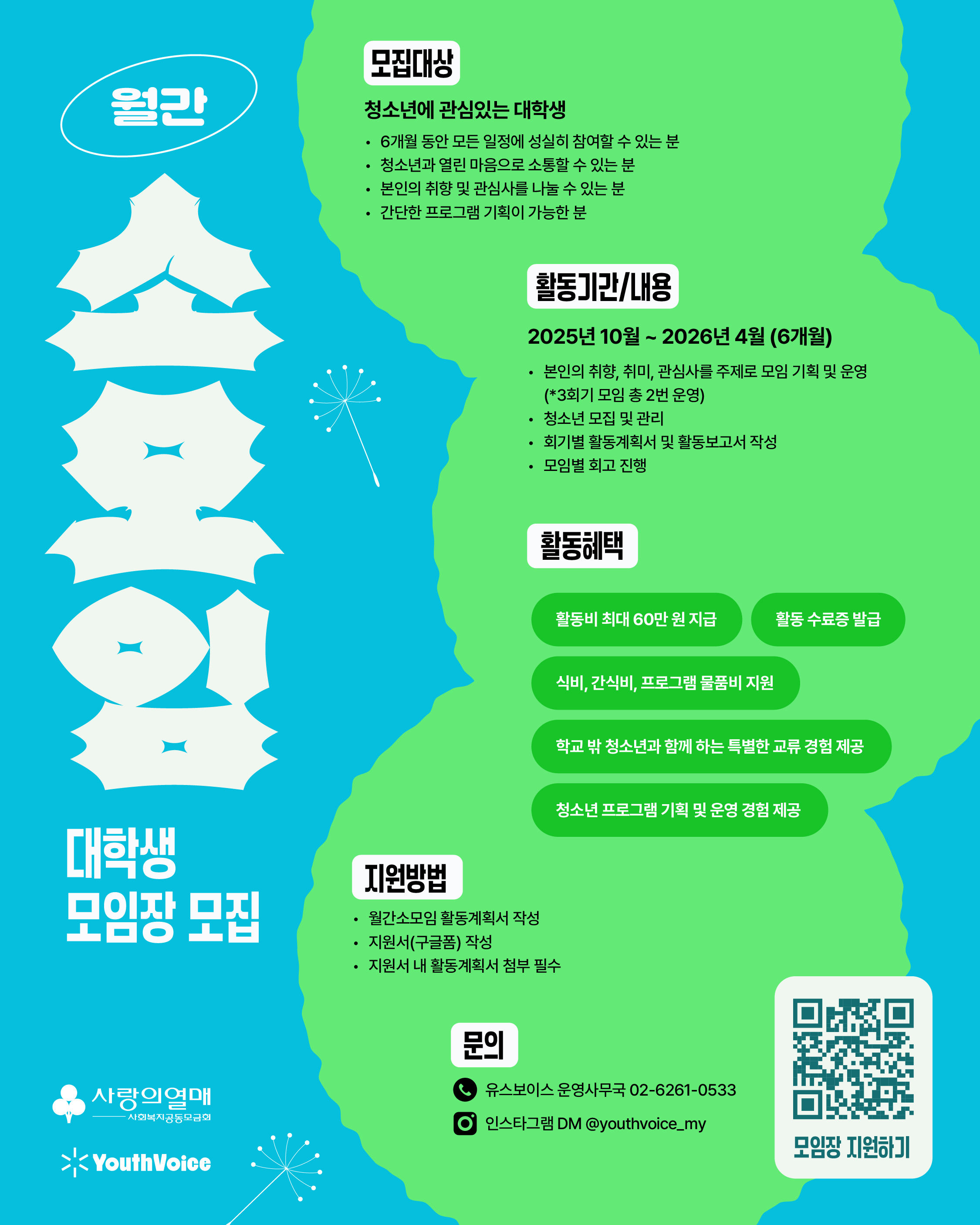 [유스보이스] 내 취향으로 만드는 청소년 소모임, ‘대학생 모임장’을 모집합니다.