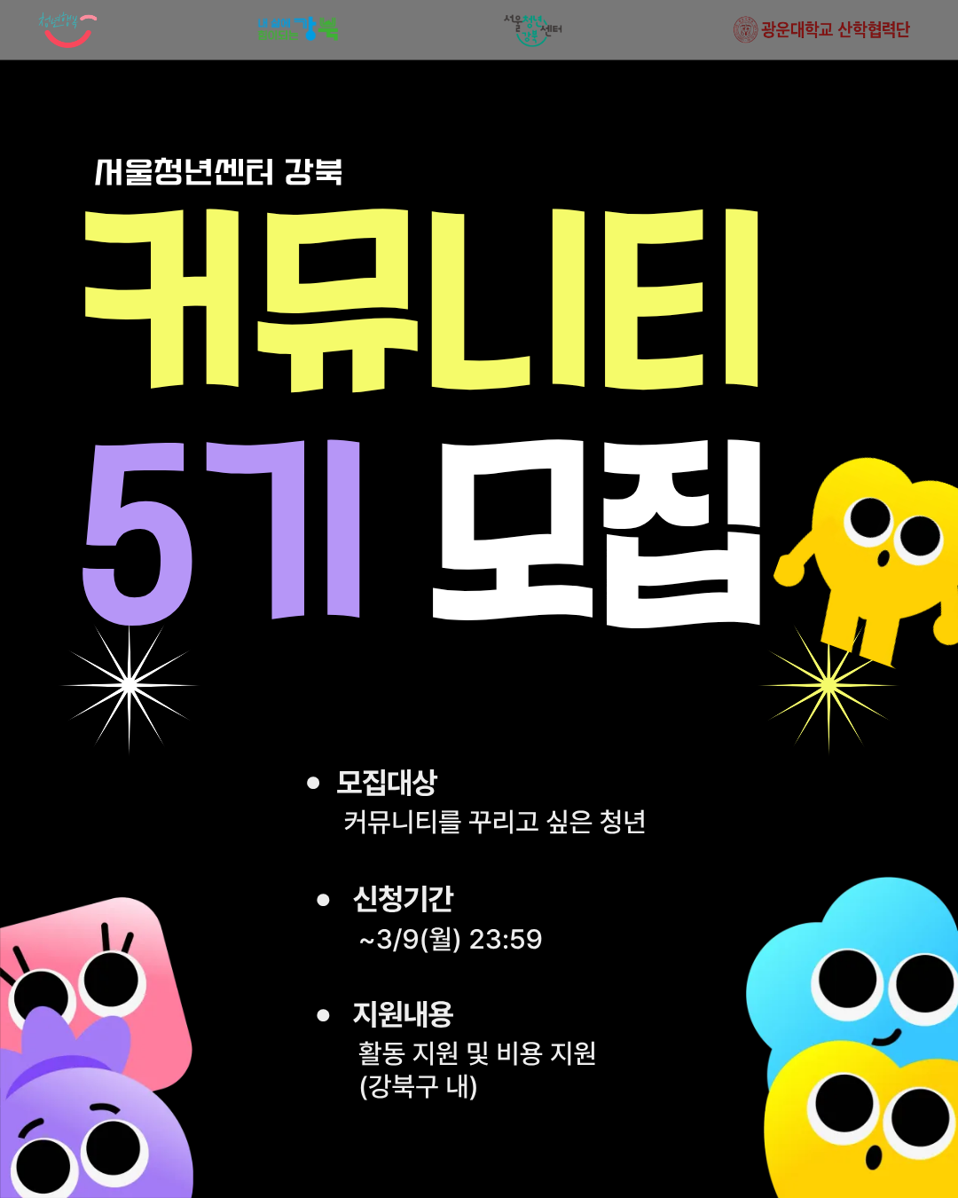 모집 대상: 강북구에 생활권을 둔 청년 (강북구 거주, 재학, 재직 등)