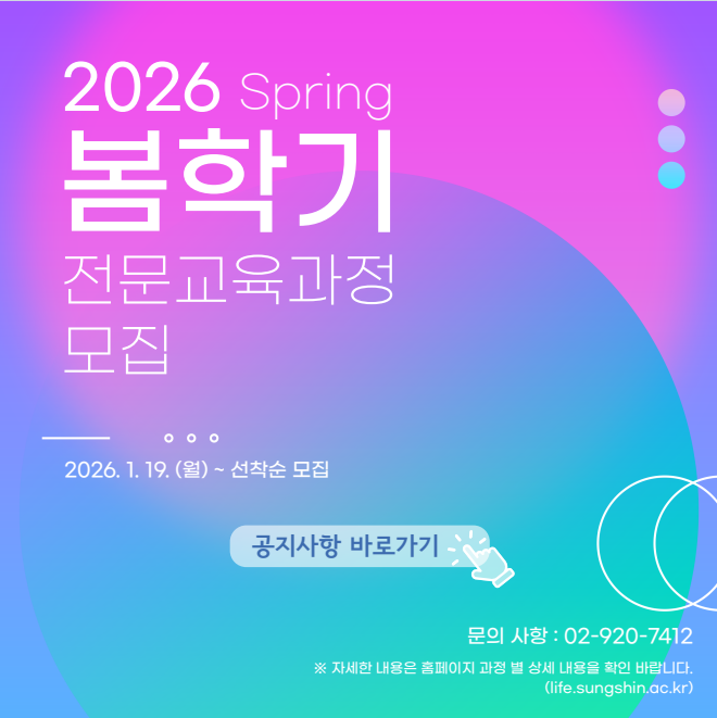 - [전문교육과정] 2026-봄(3월개강) 전문교육과정 안내 및 수강생 모 2026.01.19