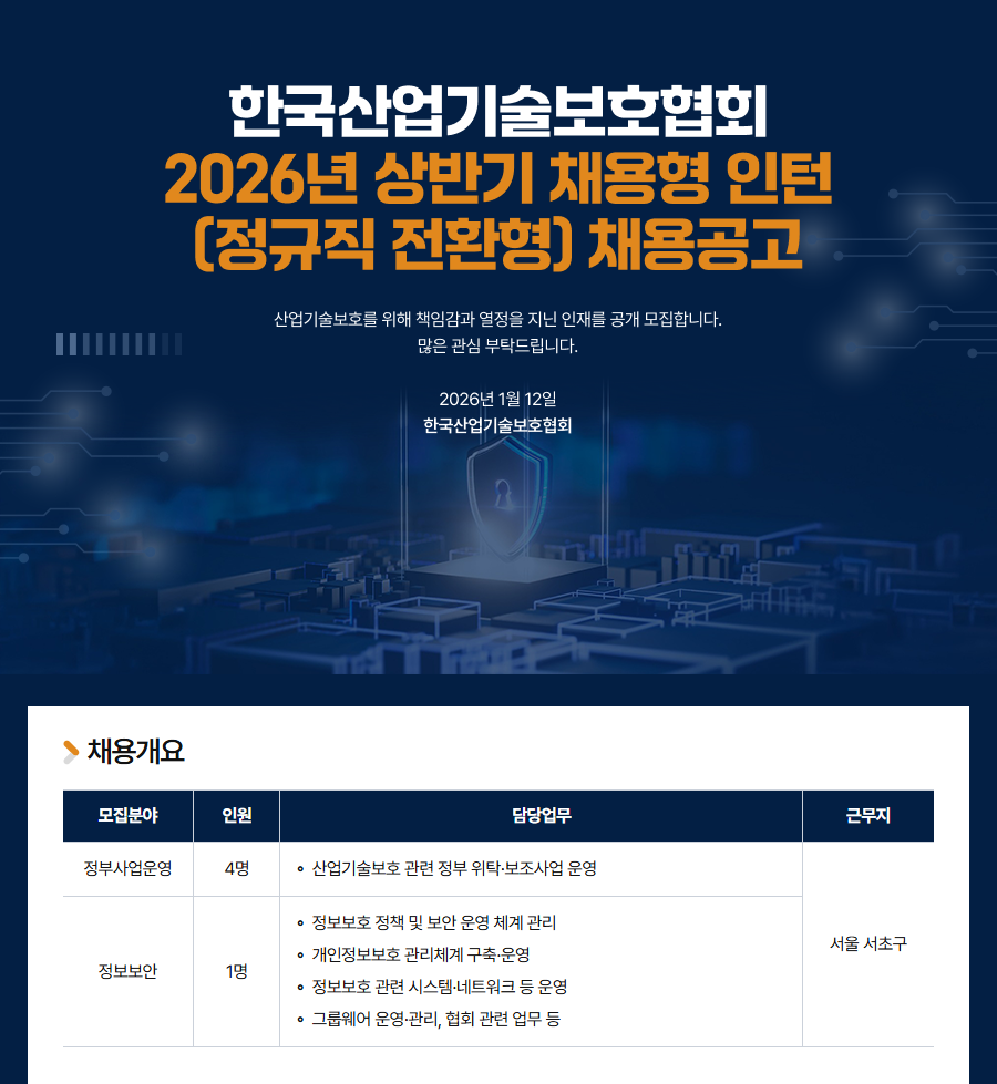 [행사/홍보] [첨단산업기술보호전문인력양성] 협회 채용형 인턴(정규직 전환형) 모집 안내