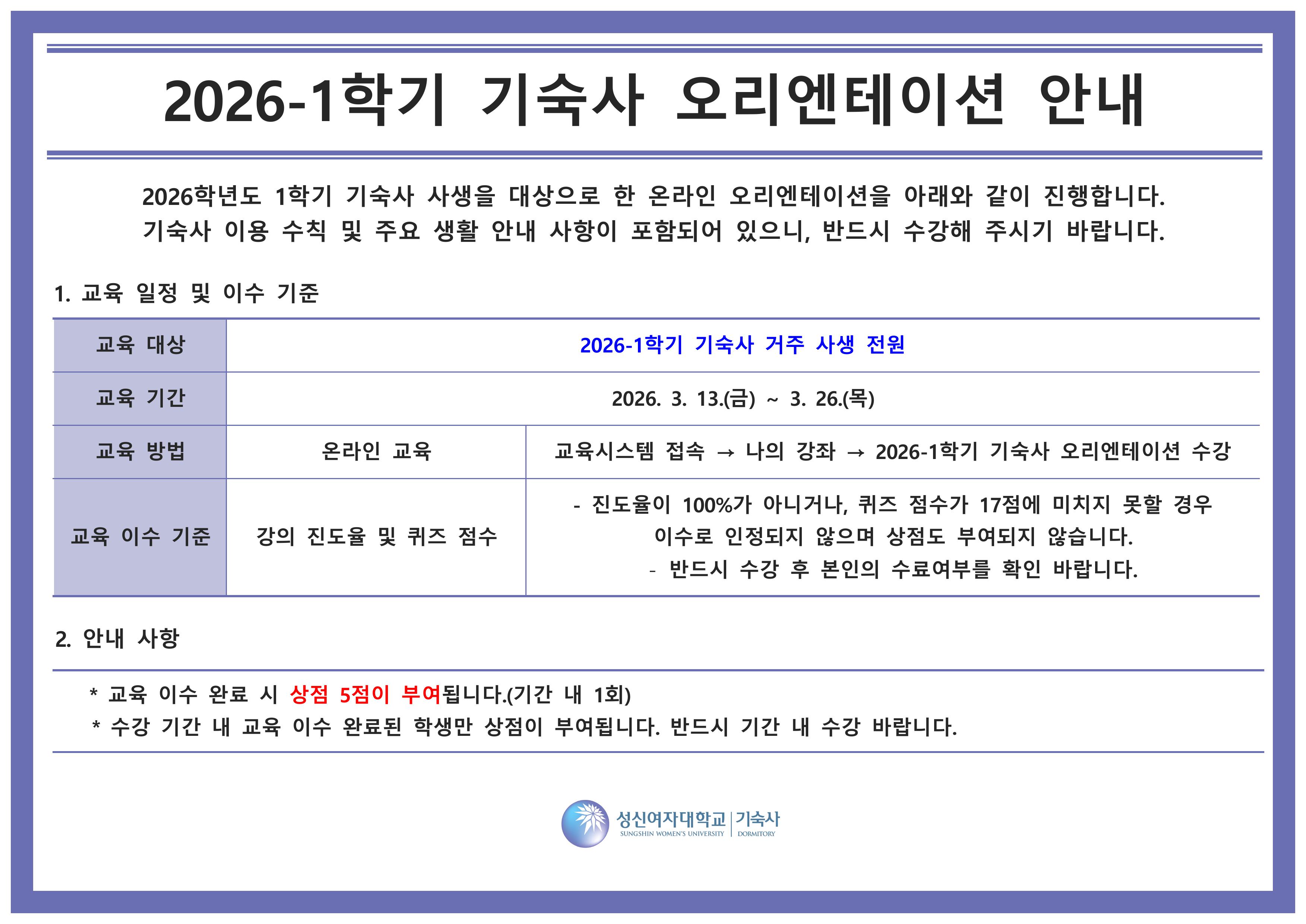 fnctId=bbs,fnctNo=4077 [일반] 2026-1학기 기숙사 오리엔테이션 안내(상점 5점) 작성일 2026.03.12 수정일 2026.03.25 작성자 기숙사 조회수 301 글번호 152655 첨부파일 첨부파일이(가) 없습니다.