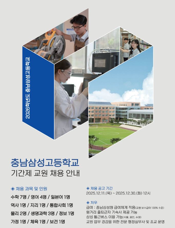 [모집·채용] 2026학년도 충남삼성고등학교 기간제교원 채용 안내
