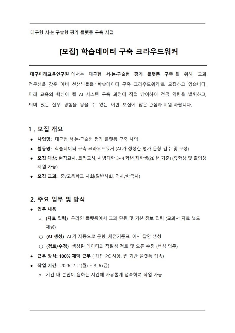 [모집] 대구미래교육연구원 '학습데이터 구축 크라우드워커' 모집 안내