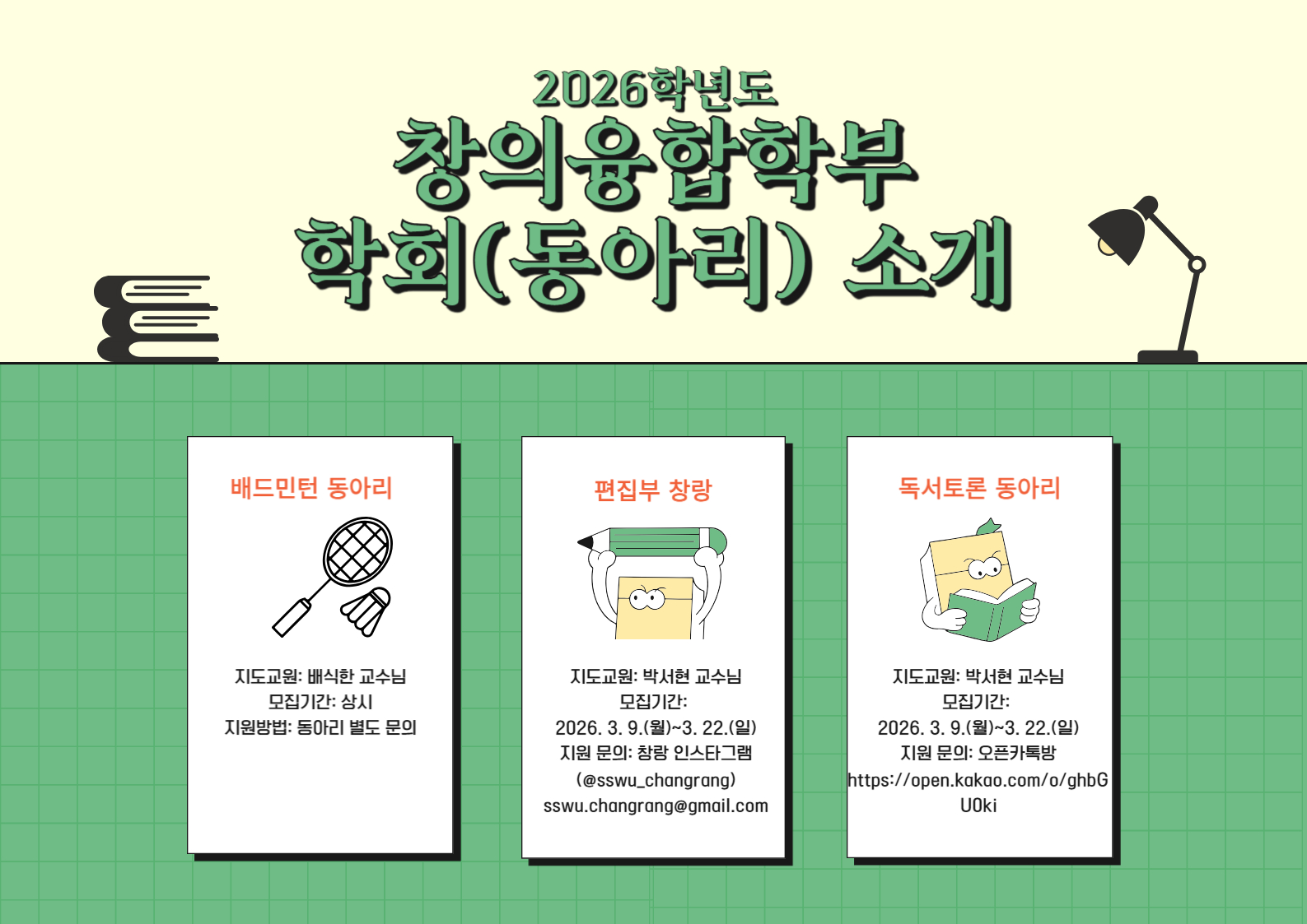 - 배드민턴 동아리: https://www.instagram.com/sswu_creative_bdm/
