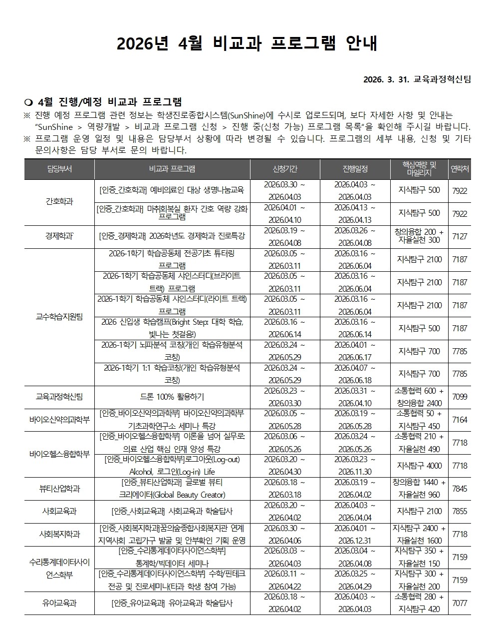 [교육과정혁신팀] 2026년 4월 비교과 프로그램 안내