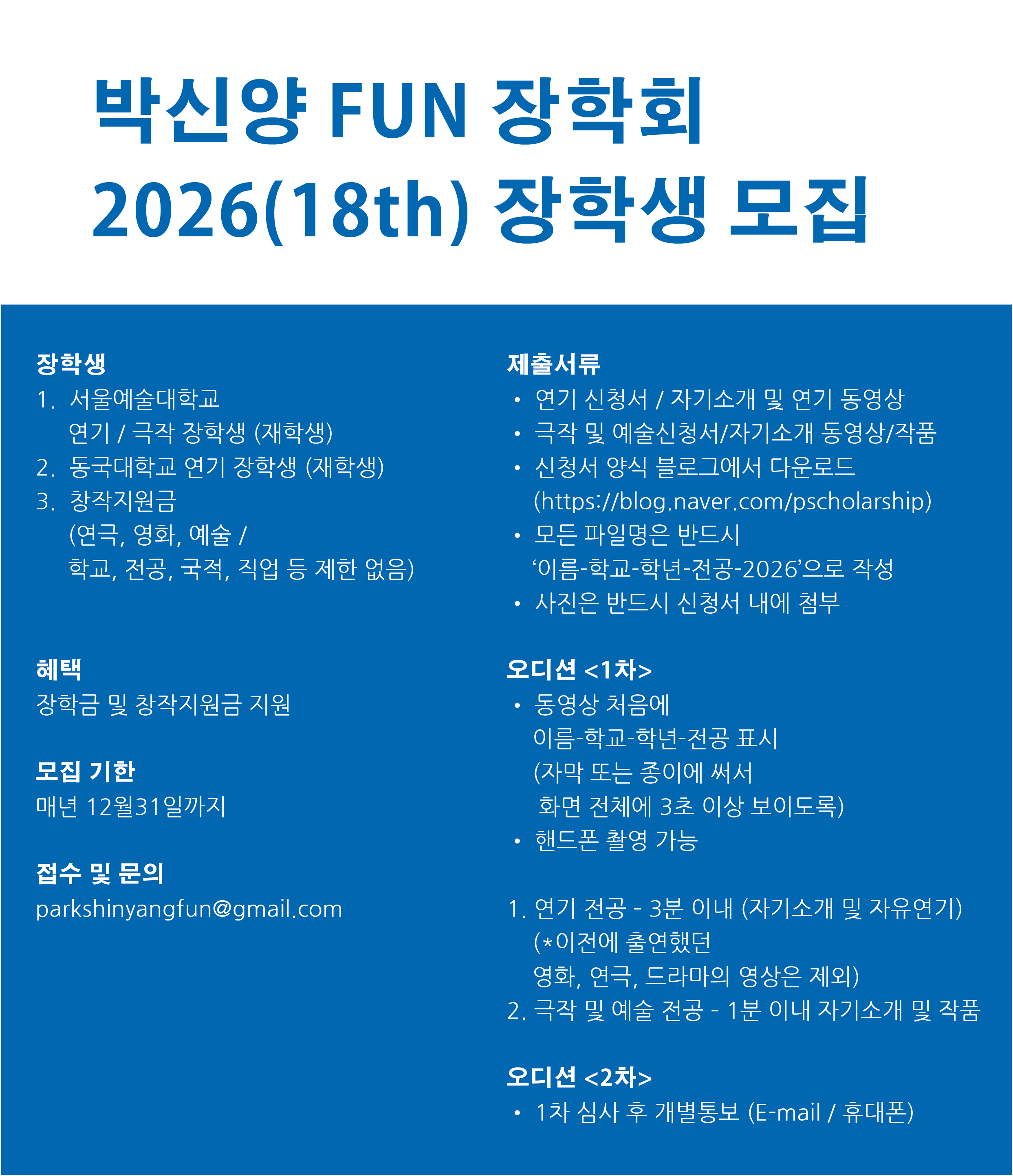 박신양 FUN 장학회 제18기 장학생 선발 안내