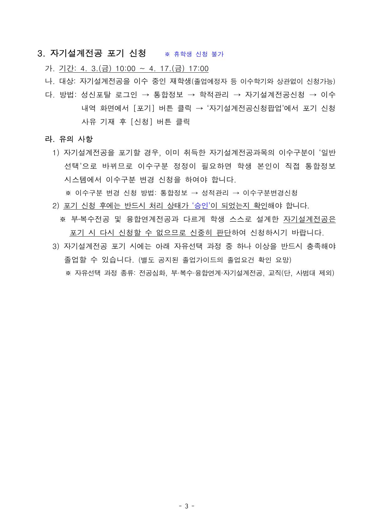 [학부] 2026학년도 1학기 다전공(부·복수·연계·자기설계전공) 변경 및 포기 신청 안내