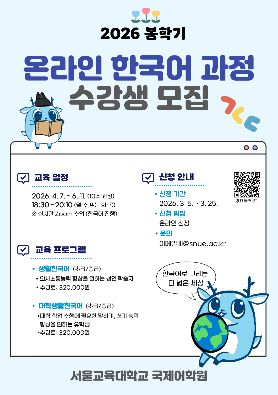 [서울교육대학교] 한국어 과정 수강생 모집 안내 [SNU-E] Opening Online Korean Language Course