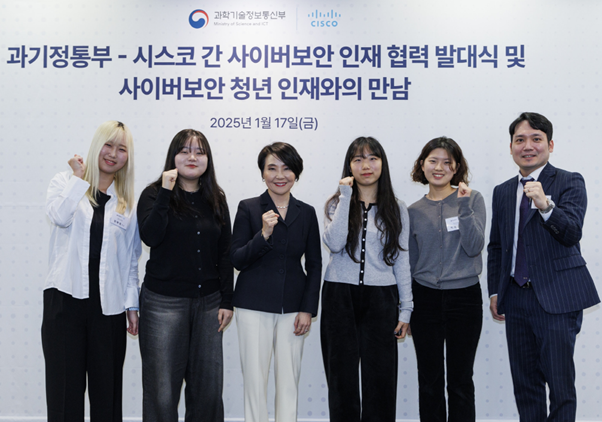 시스코코리아 본사에서 1월 17일 열린 ‘버추얼 인턴십 프로그램(VIP)’ 론칭 행사에서 융합보안공학과 재학생들과 융합보안공학과 홍준호 교수가 기념촬영을 하고 있다.