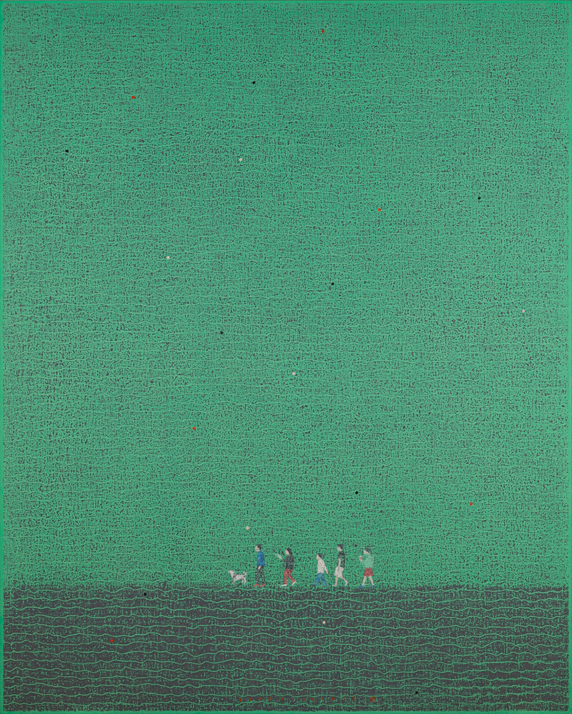 이 교수는 색을 칠한 뒤 긁어내고, 다시 메우고 씻어내는 행위를 무수히 반복하며 캔버스 위에 시간의 흔적을 축적하는 화법을 구현한다. 이러한 방식은 산조 가락의 긴장과 이완처럼 작품에 독특한 리듬감과 깊은 공간감을 부여하고 관람객은 작품을 통해 특정 장면을 인식하기보다 새벽의 공기와 정서 그리고 변화의 순간을 직관적으로 경험할 수 있다.