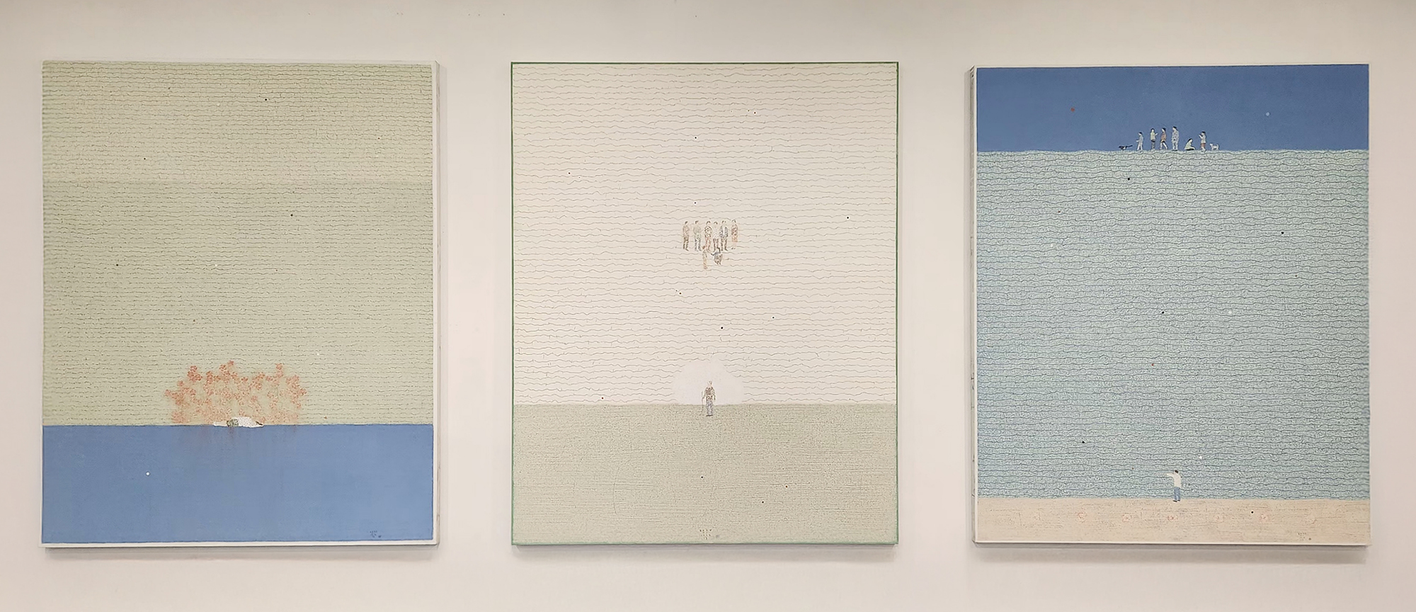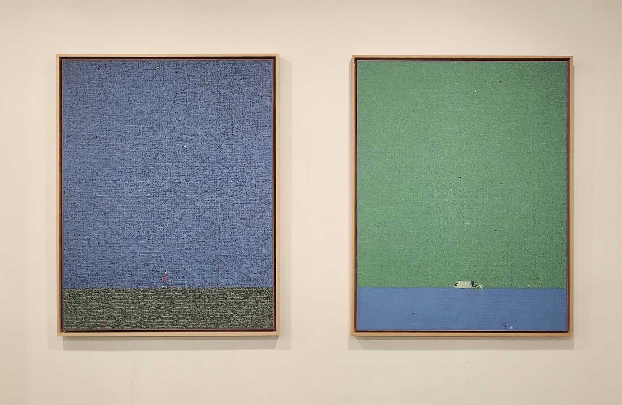 전시의 핵심 테마인 ‘산조’는 한국 전통 음악 형식을 빌려온 개념으로 이 교수는 일정한 흐름 속에서 자유롭게 변주되는 산조의 리듬을 회화적 언어로 확장해 캔버스에 담아냈다. 특히 어둠과 빛이 교차하는 경계의 순간인 ‘새벽’을 통해 밀려오고 밀려나는 변화의 역동성을 화면 위에 섬세하게 구현해 냈다.