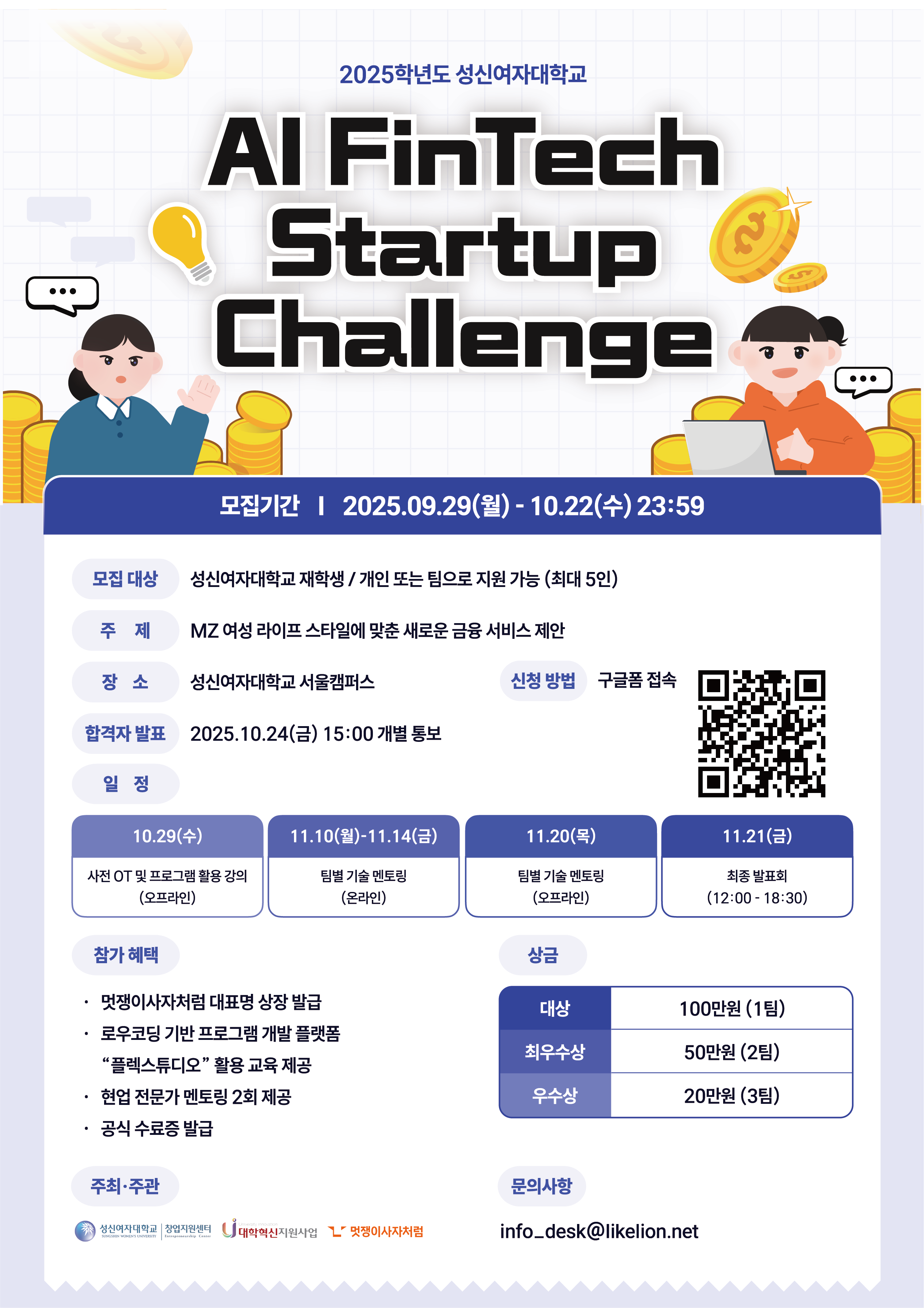 [창업지원센터] 2025 성신여대 'AI FinTech Startup Challenge'