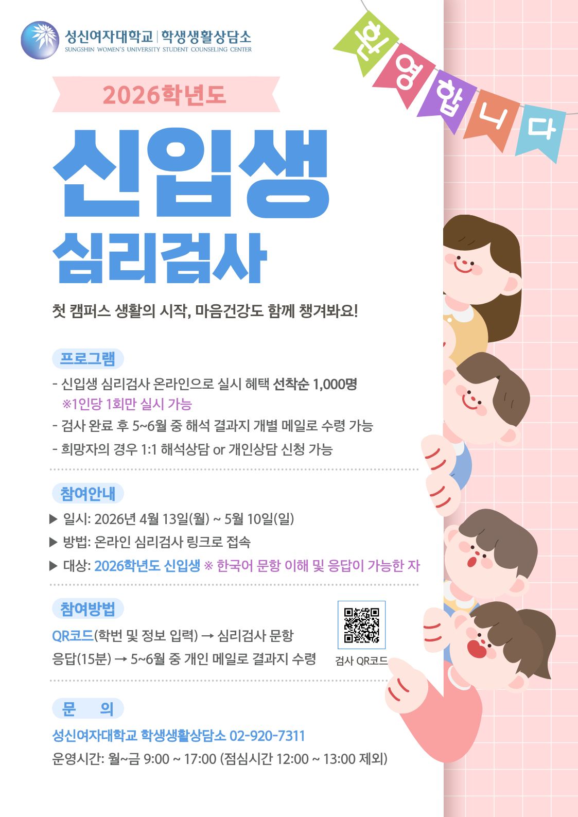 [학생생활상담소] 2026학년도 신입생 심리검사 실시 안내