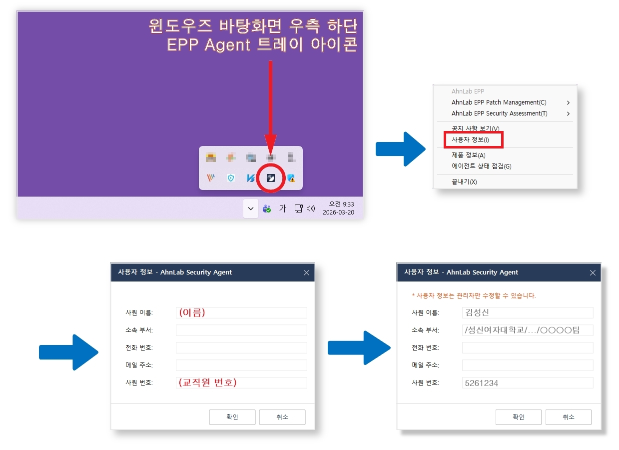 1. EPP Agent 트레이 아이콘 마우스 우클릭 → 사용자 정보 입력 선택