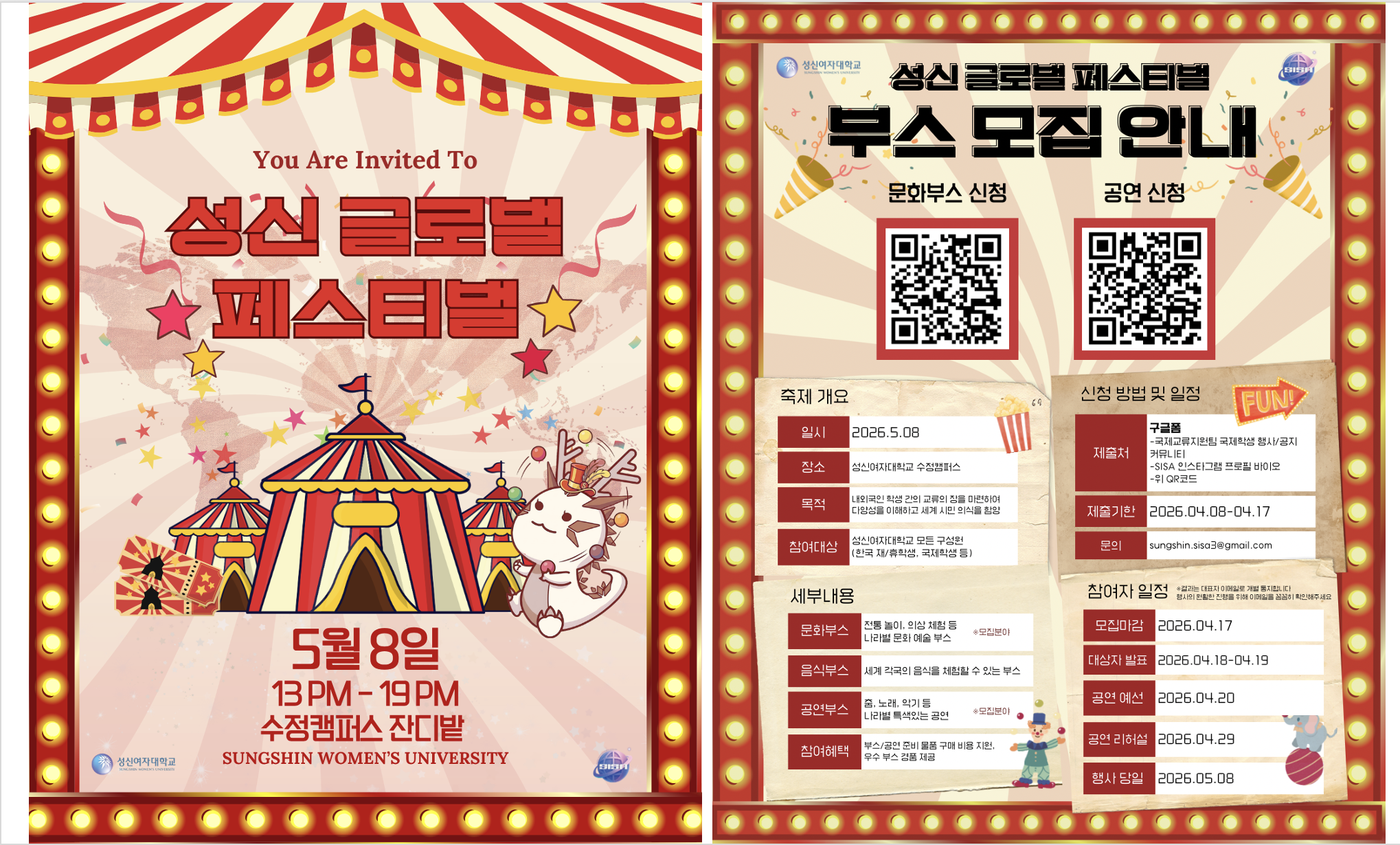 [국제교류지원팀] 2026 성신 글로벌 페스티벌 문화 부스 및 공연 참여자 모집 안내
