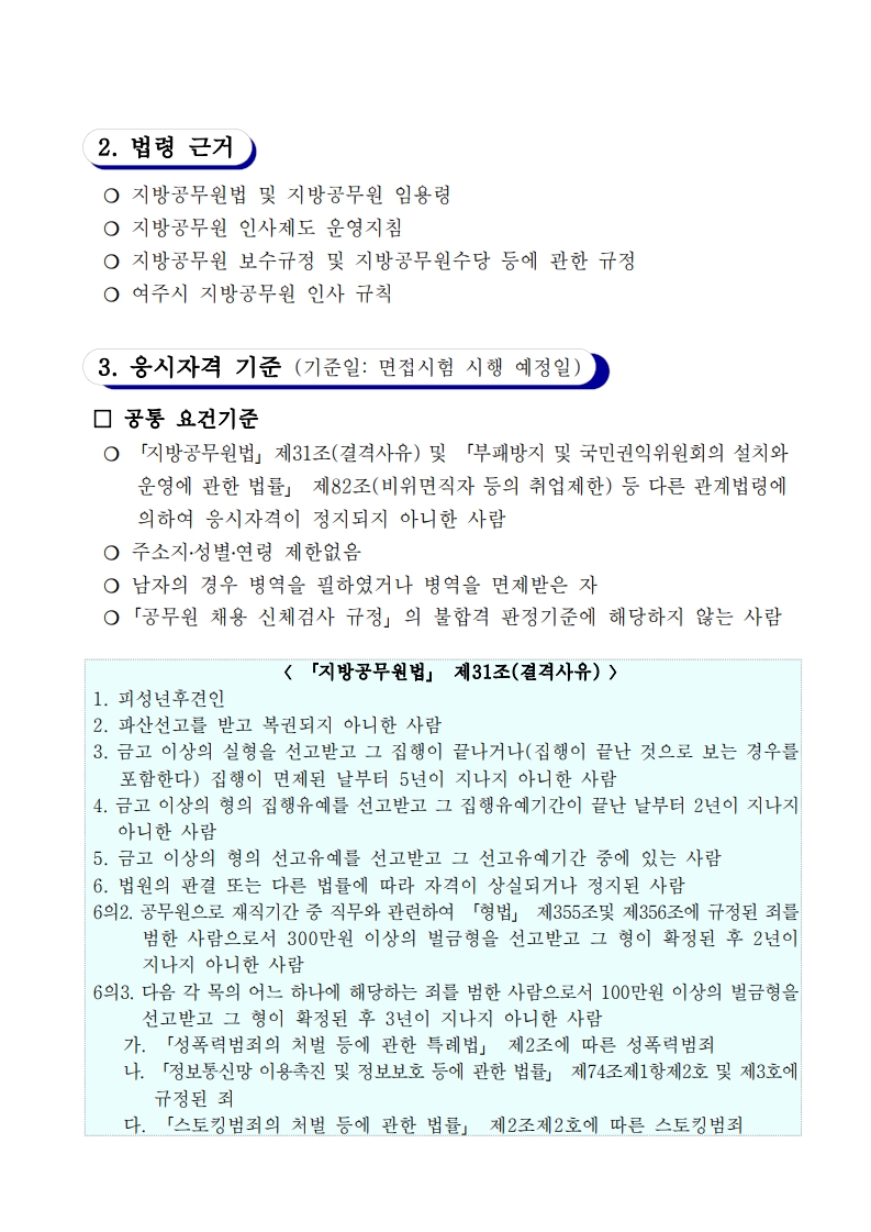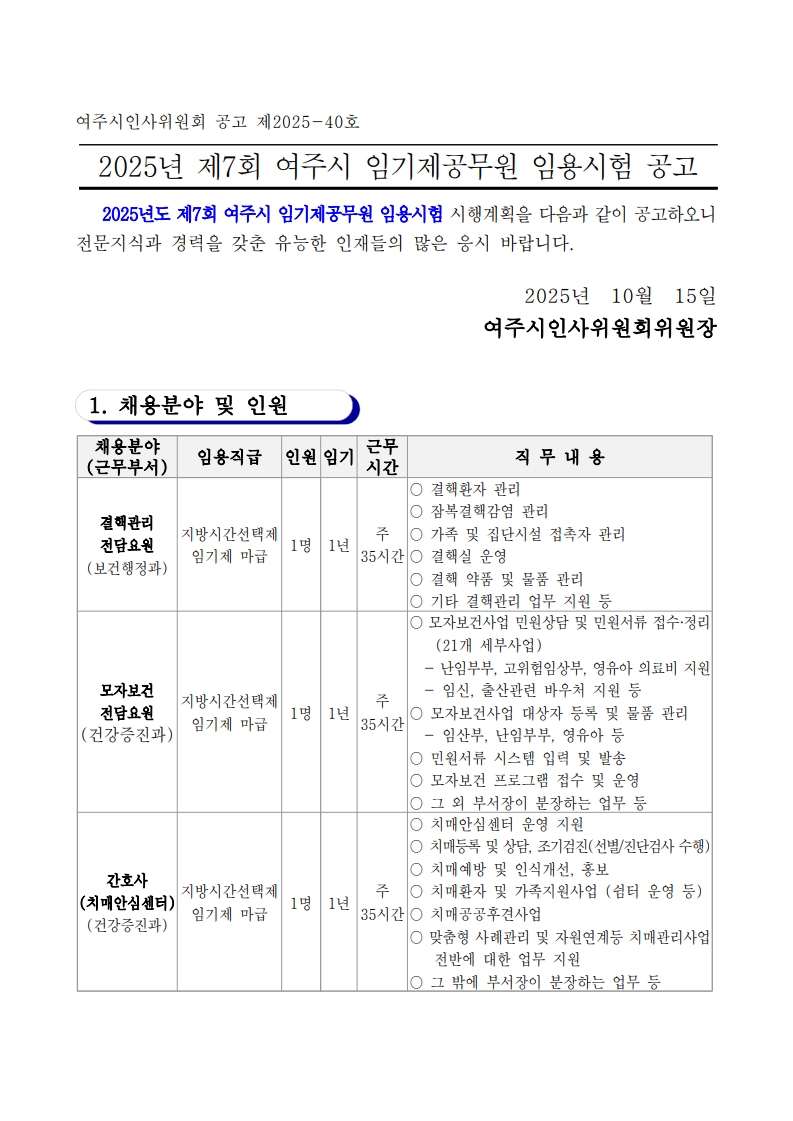 ※장학공지는 성신포탈 로그인 후 ‘공지→학부장학’에서 확인하세요. (대학원은 각 대학원 홈페이지에서 확인) fnctId=bbs,fnctNo=3183 [대학일자리플러스센터] 여주시 2025년 제7회 임기제공무원 임용시험 공고 작성일 2025.10.17 수정일 2025.10.17 작성자 대학일자리플러스센터 조회수 84 글번호 148015 첨부파일 [여주시] 2025년 제7회 임용시험 공고.pdf 미리보기 [붙임1] 여주시 임용시험 제출서류.hwp 미리보기