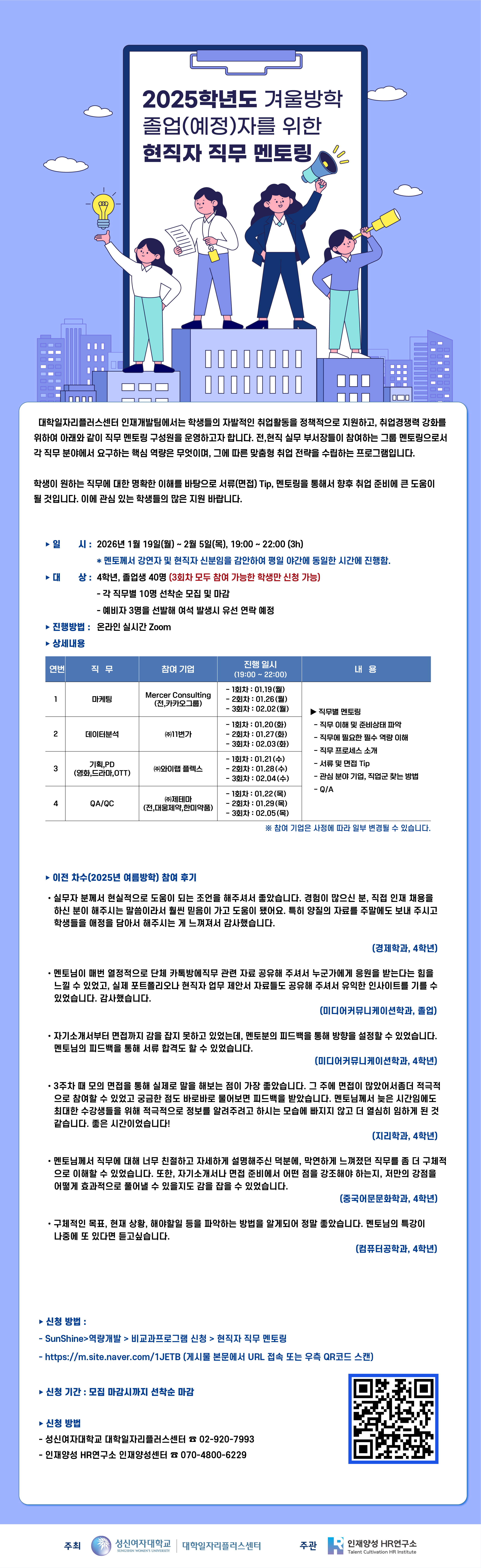 [대학일자리플러스센터] 2025학년도 겨울방학 졸업(예정)자를 위한 현직자 직무 멘토링