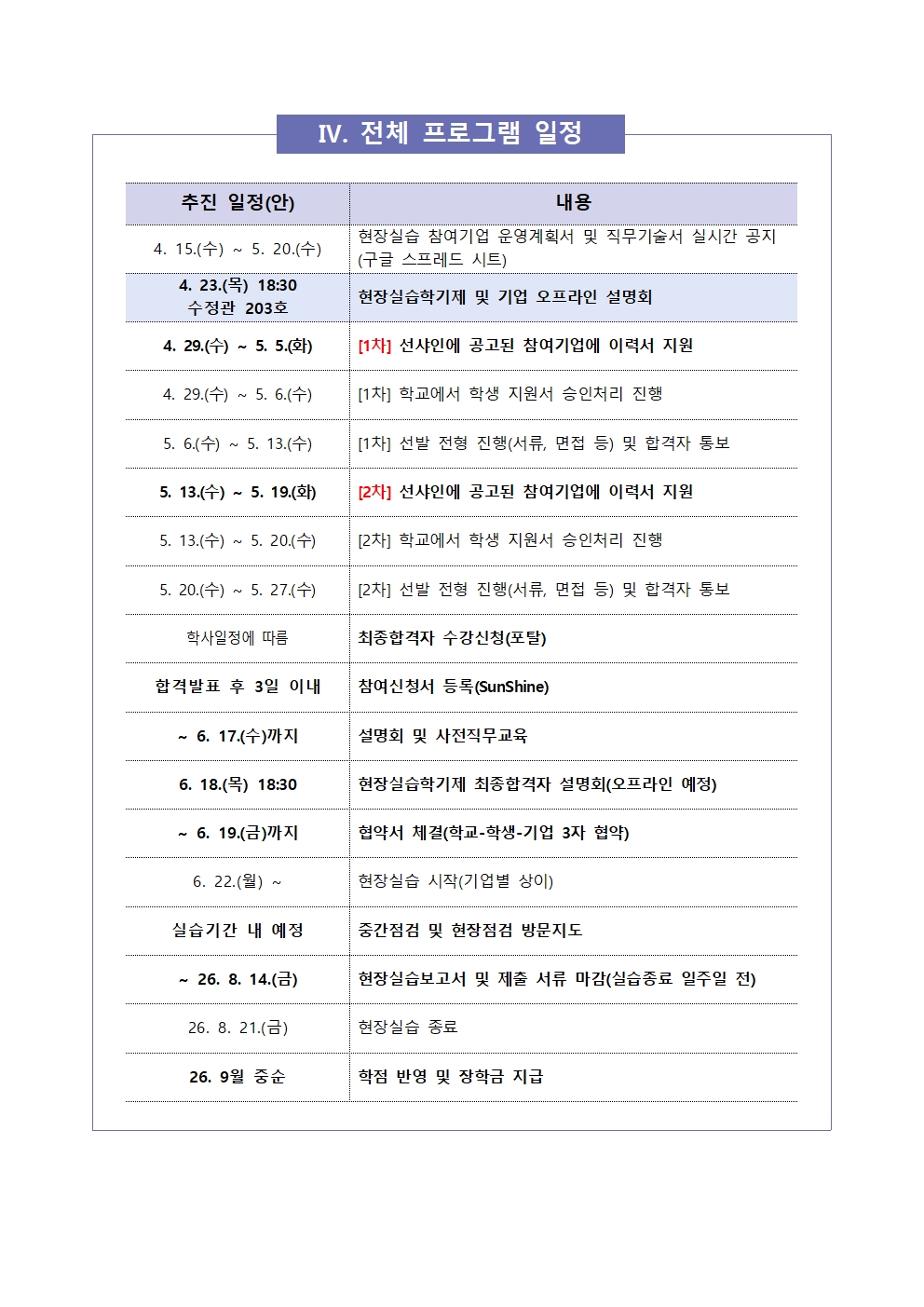 fnctId=bbs,fnctNo=4475 [교내 공지] [현장실습운영팀] 2026-하계 현장실습학기제(Co-op) 참여학생 모집 안내 작성일 2026.04.08 수정일 2026.04.08 작성자 수리통계데이터사이언스학부 조회수 12 글번호 153966 첨부파일 첨부파일이(가) 없습니다.