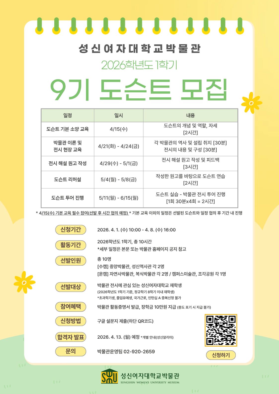 [모집] 성신여자대학교박물관 도슨트(Docent) 9기 모집 (신청기간 4/1~4/8)