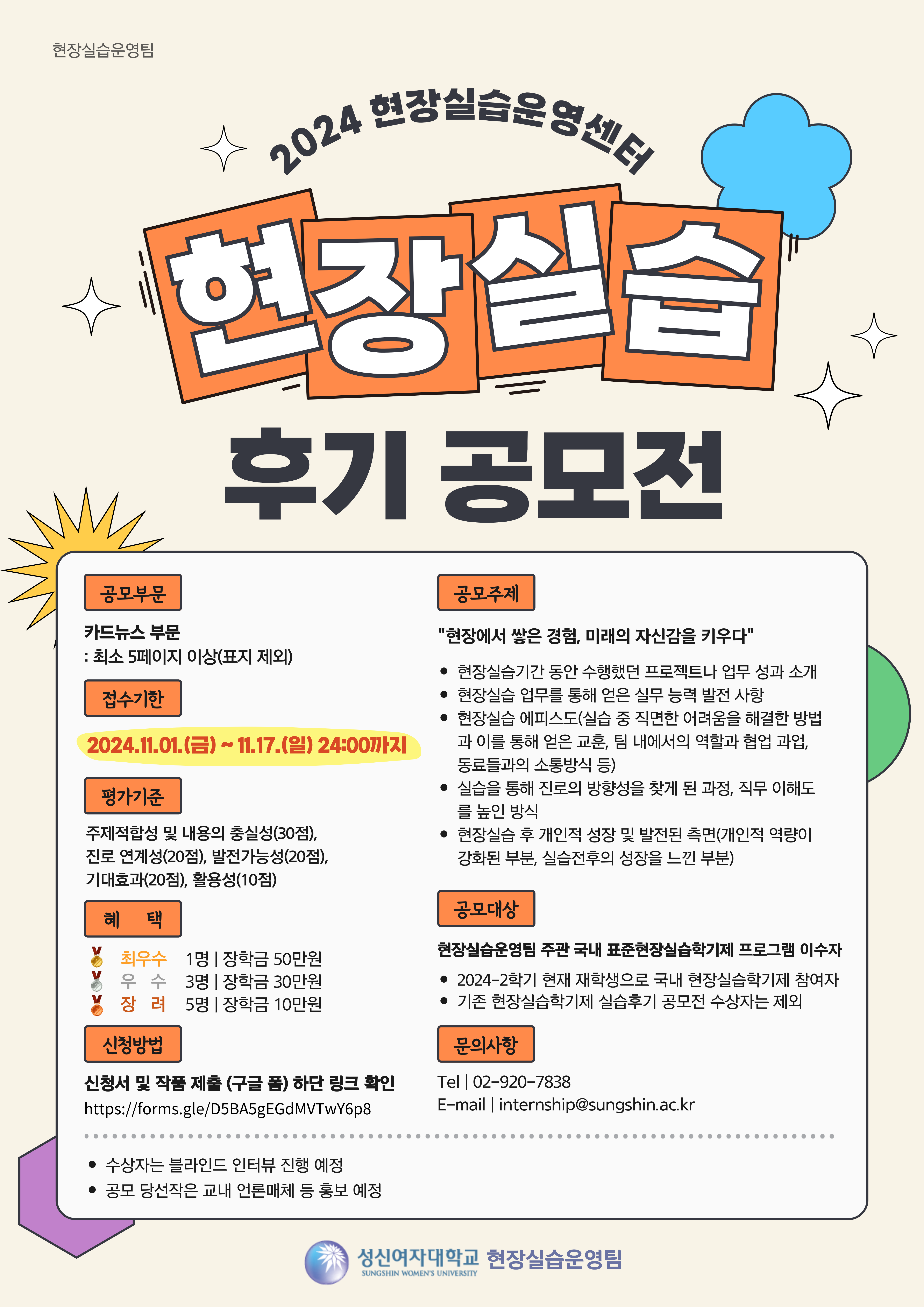 [현장실습운영팀] 2024학년도 '국내 현장실습학기제 실습후기 공모전' 개최 안내