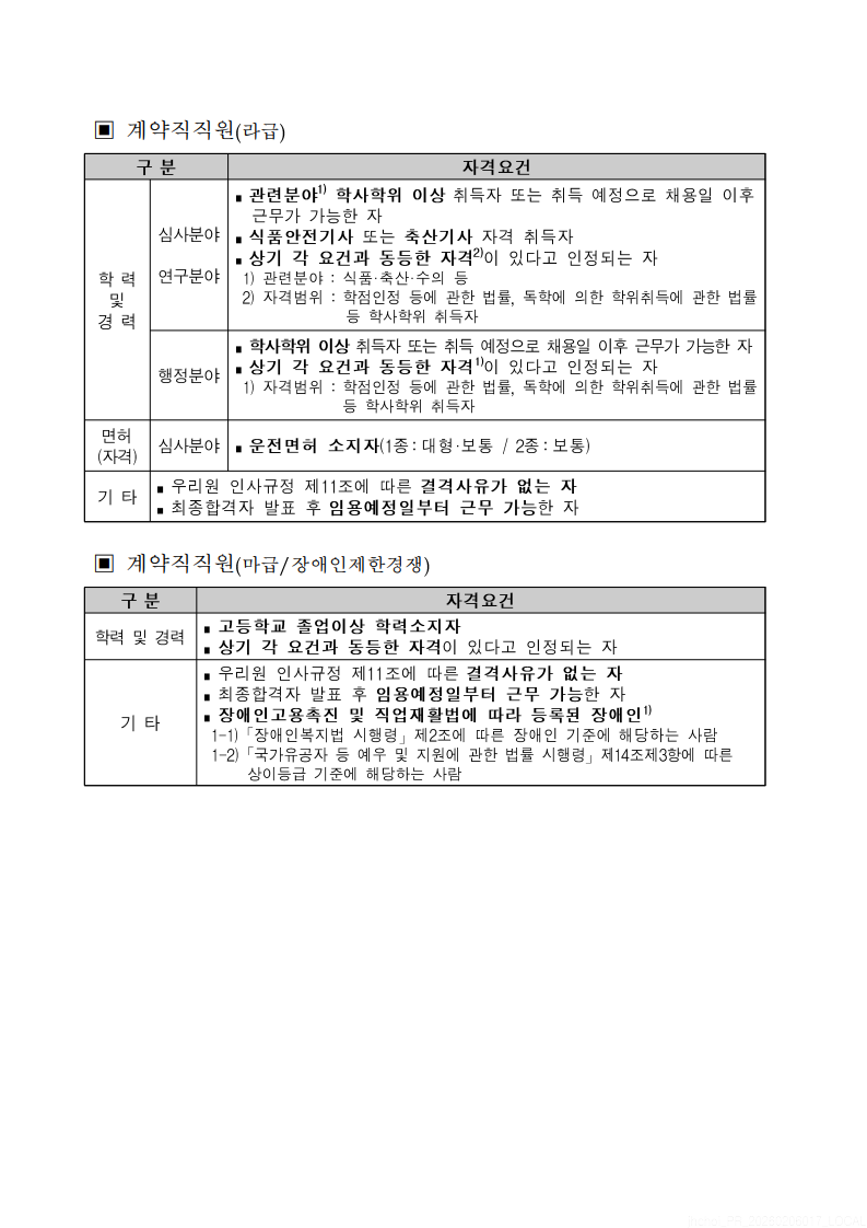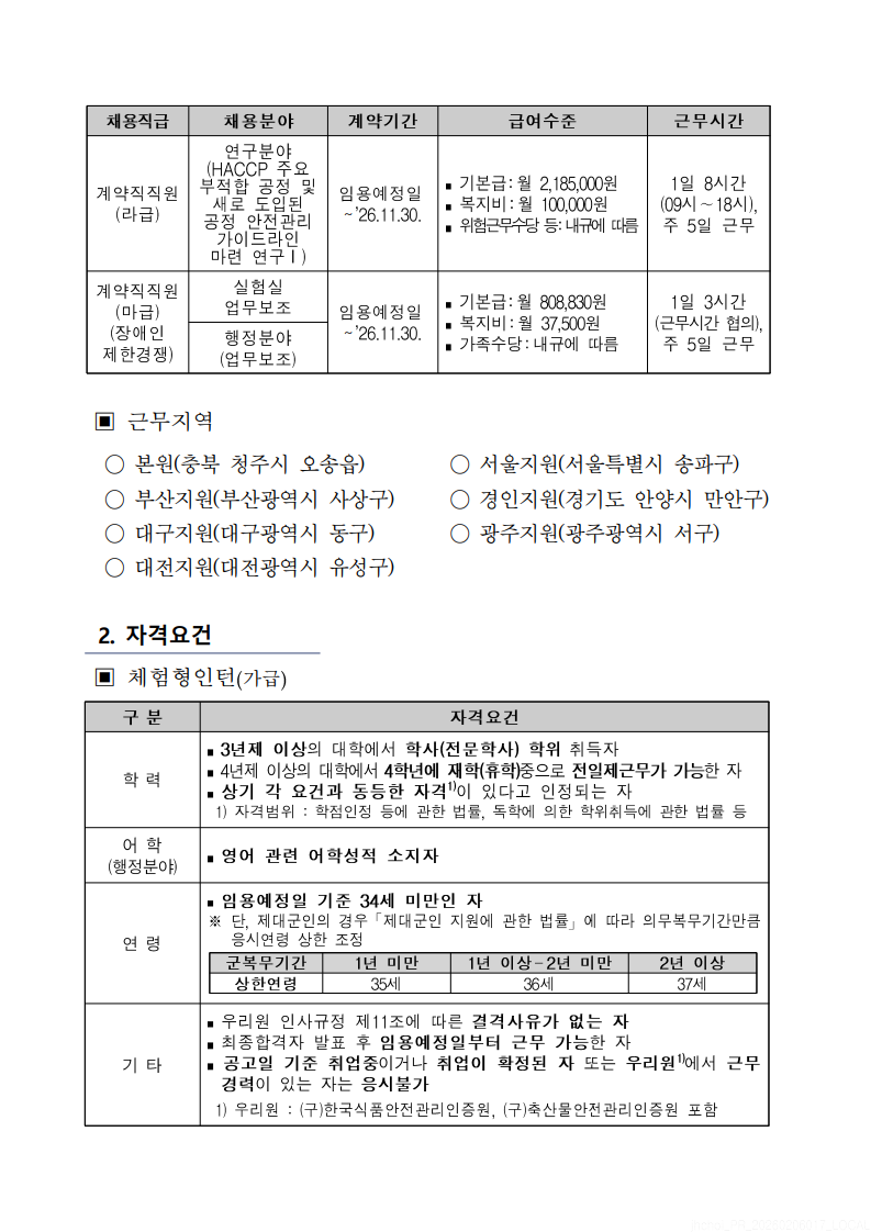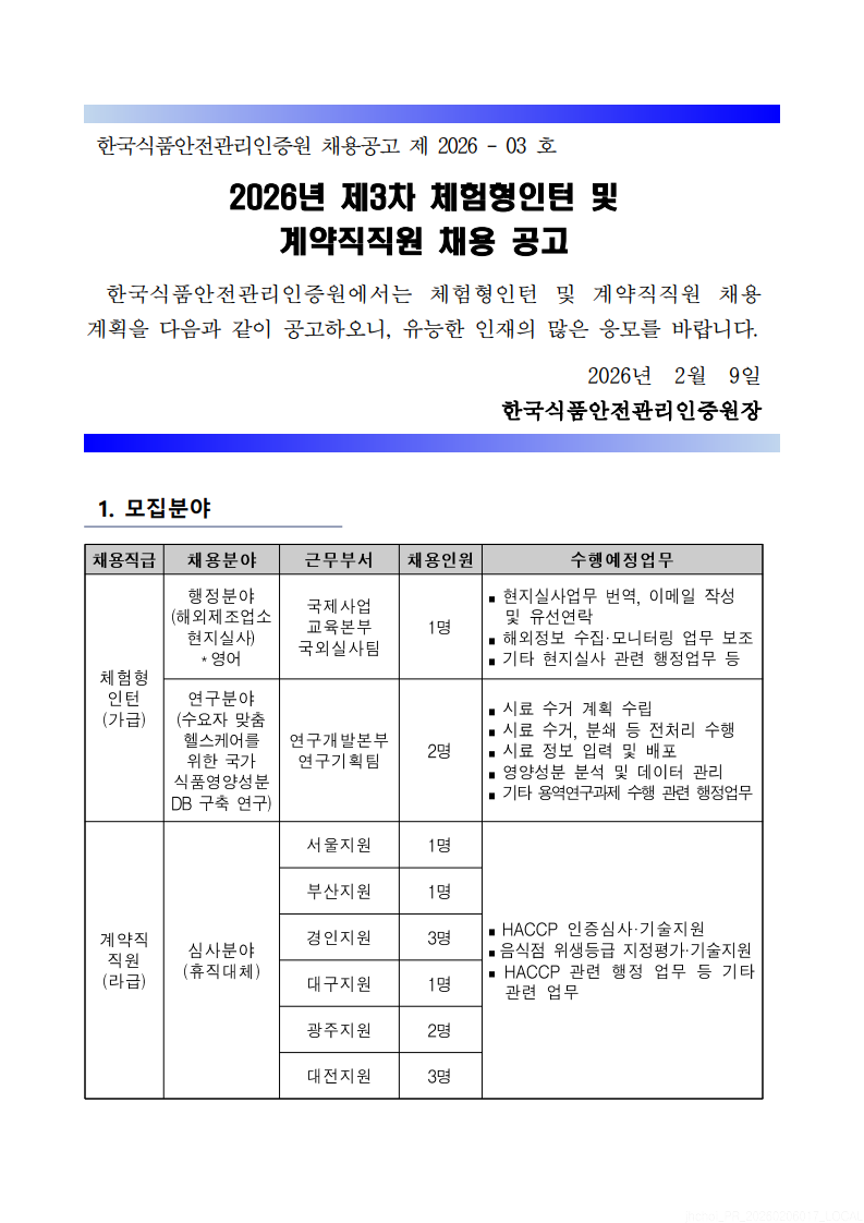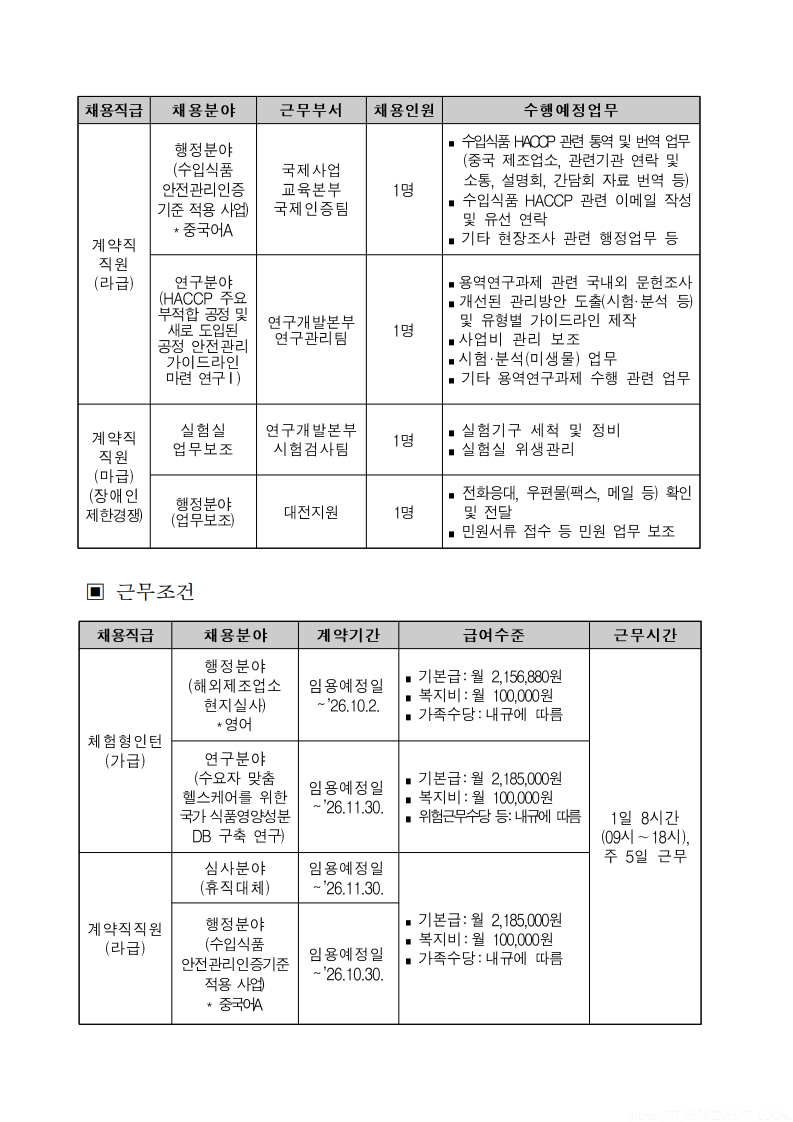 [한국식품안전관리인증원] 계약직 직원 채용 안내
